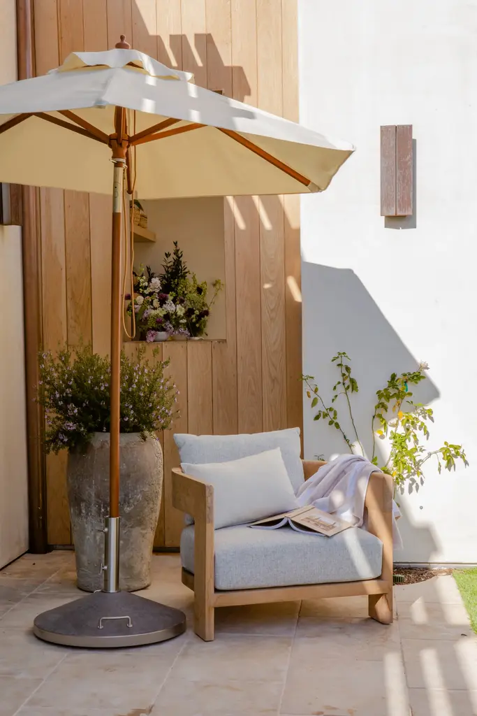 Sun + skin = premature aging, right? I am all about protecting my skin, but I don't want to miss out on enjoying beautiful days outside. This classic outdoor umbrella is made from UPF50+ fabric which is the highest sun protection rating a fabric can get! The frame is crafted from durable South Asian Kapur wood and features a 45-degree tilt function. You can sit comfortably in the shade and enjoy the sun (from any angle!) without the sun damage. P.S. Also wear your sunscreen.