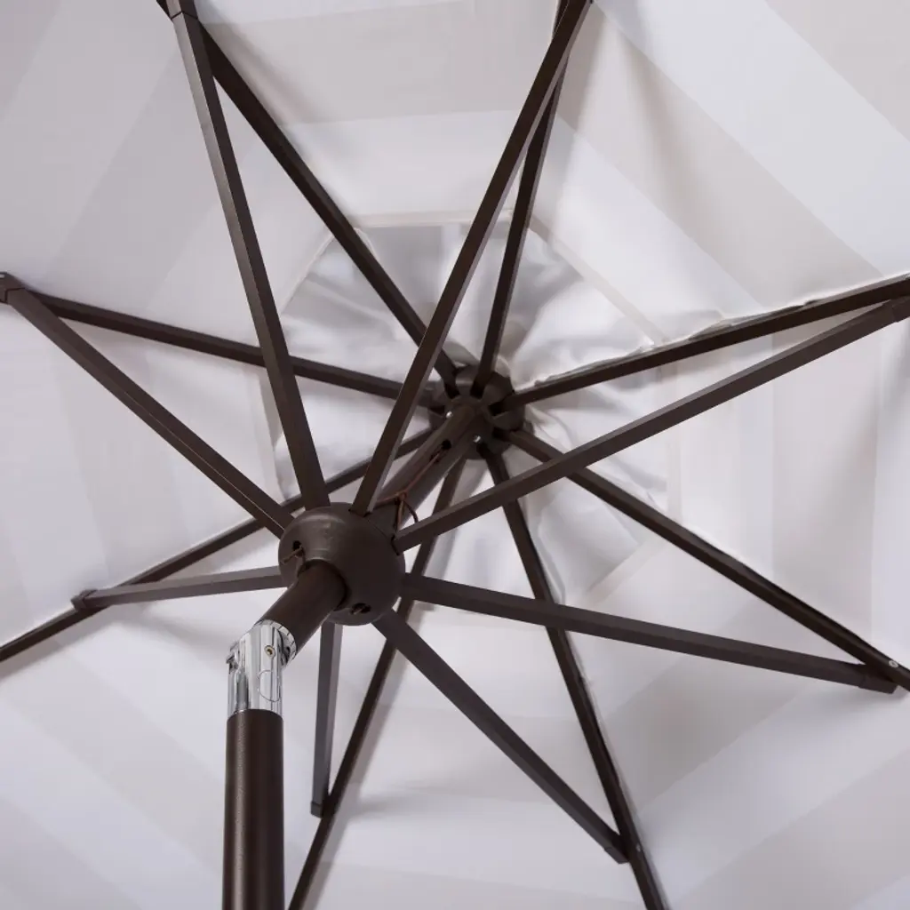 Maui Single Scallop Striped 9Ft Crank Push Button Tilt Umbrella - Pat8011 - Beige/white - Safavieh