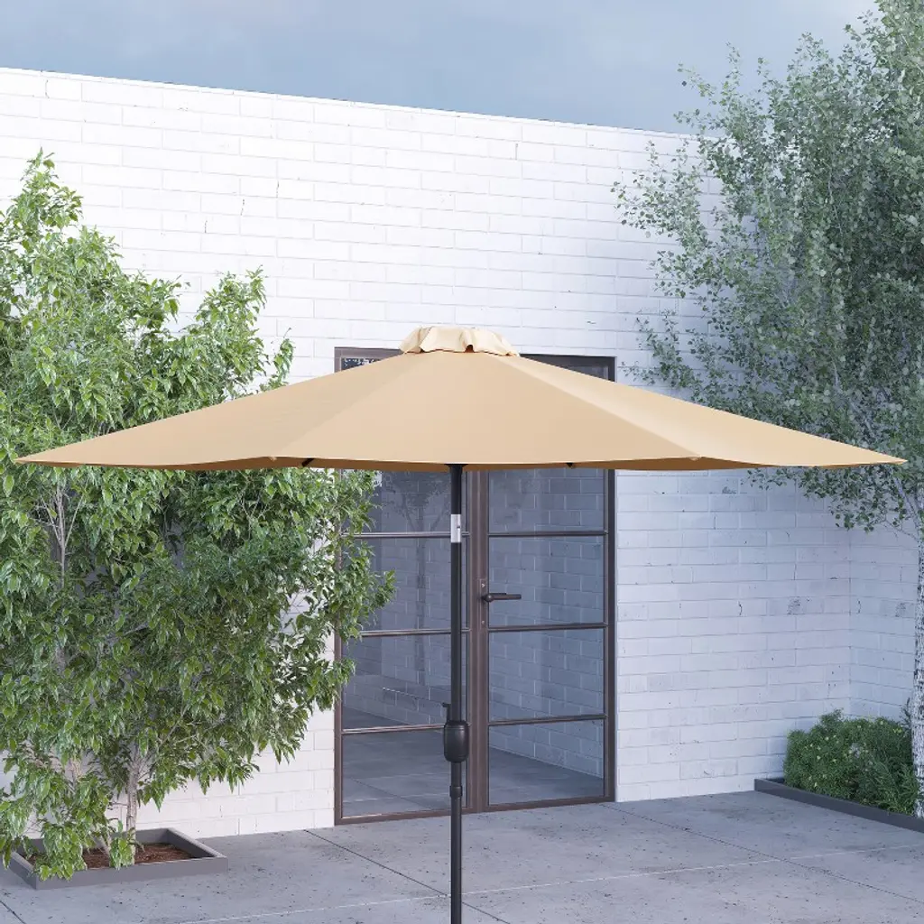 Merrick Lane Bali Tan 9' Round Uv Resistant Outdoor Patio Umbrella With Height Lever And 33° Push Button Tilt