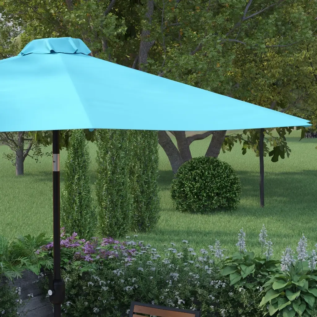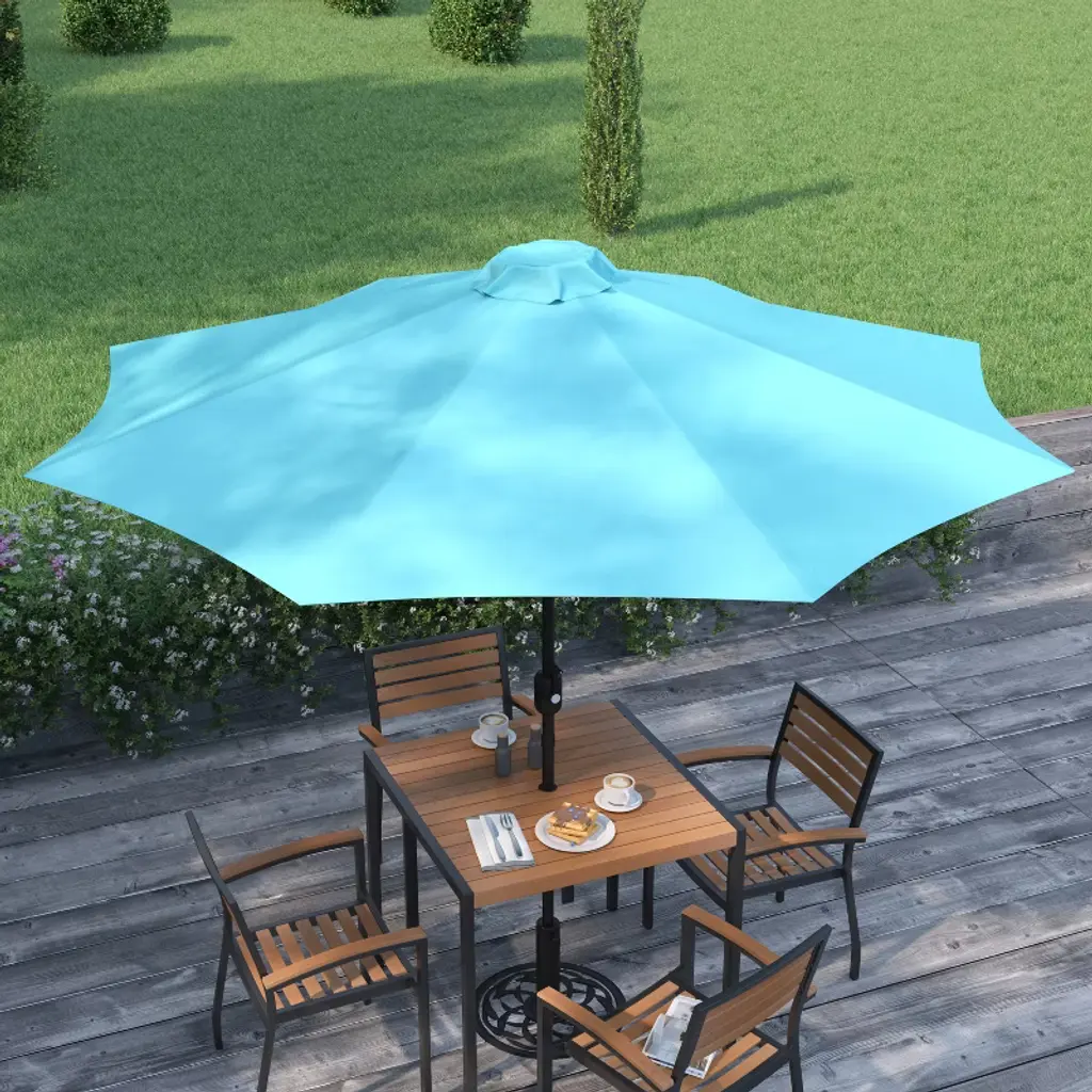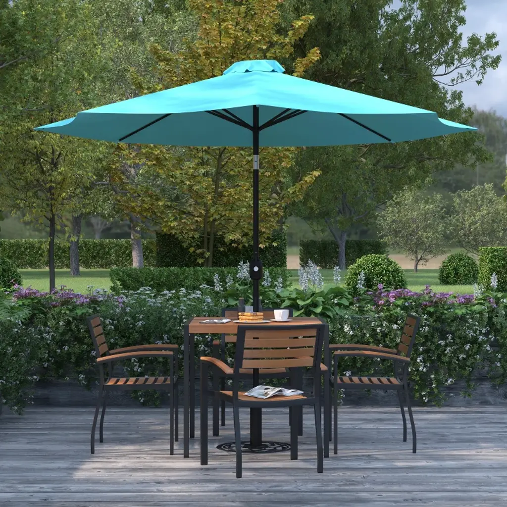 Merrick Lane Teal 9' Round Uv Resistant Outdoor Patio Umbrella With Height Lever And 33° Push Button Tilt