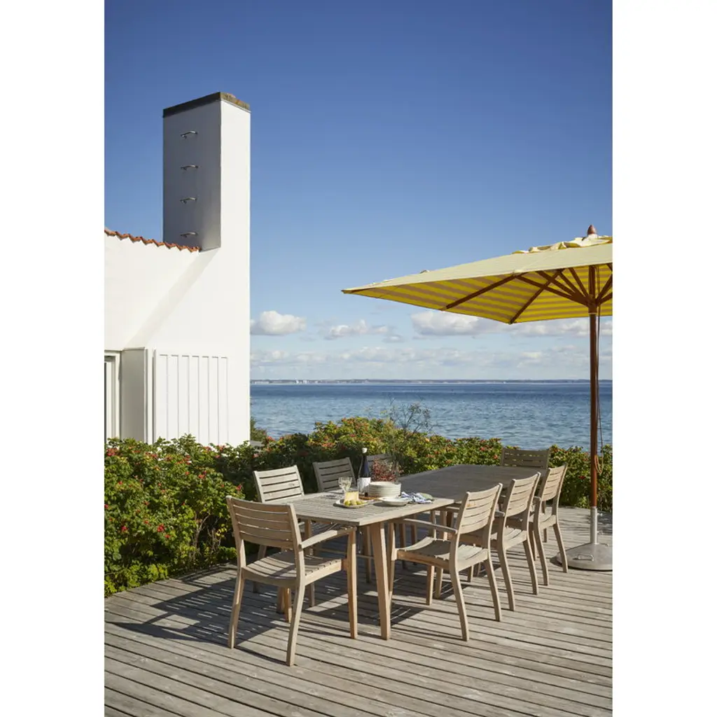 The Messina parasol by Skagerak perfects your summer oasis with classic elegance. Messina parasol's frame is made of durable Indonesian Kapur wood, and the Teflon-treated fabric is repellent to dirt and water. The combination of wood and striped fabric gives the parasol a timeless, classic appearance.