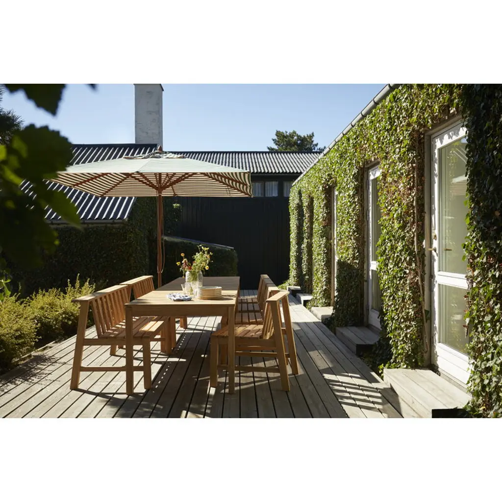 The Messina parasol by Skagerak perfects your summer oasis with classic elegance. Messina parasol's frame is made of durable Indonesian Kapur wood, and the Teflon-treated fabric is repellent to dirt and water. The combination of wood and striped fabric gives the parasol a timeless, classic appearance.