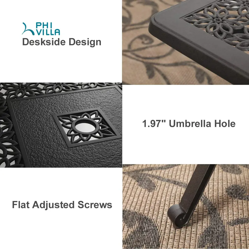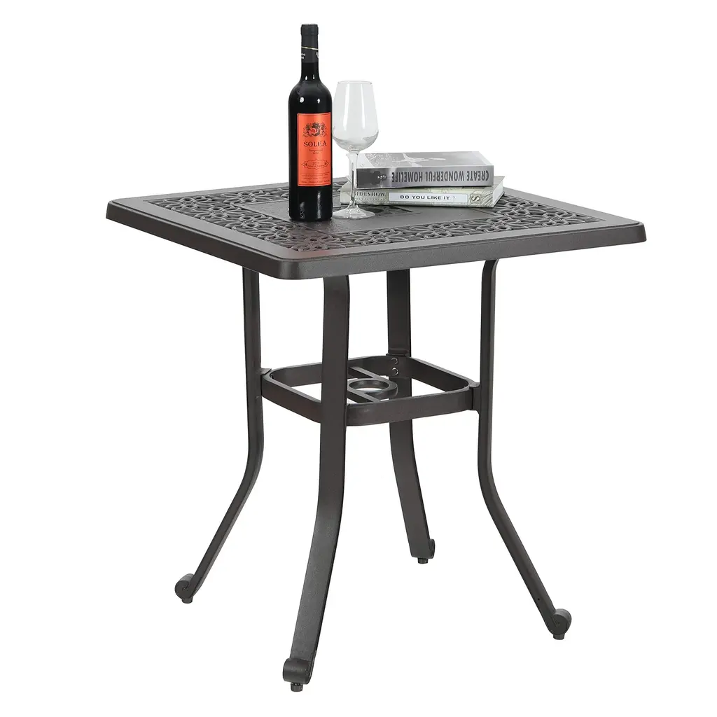 Mfstudio Patio Cast Aluminum Bistro Square Dining Table With Umbrella Hole
