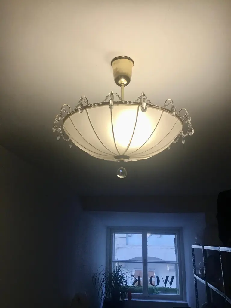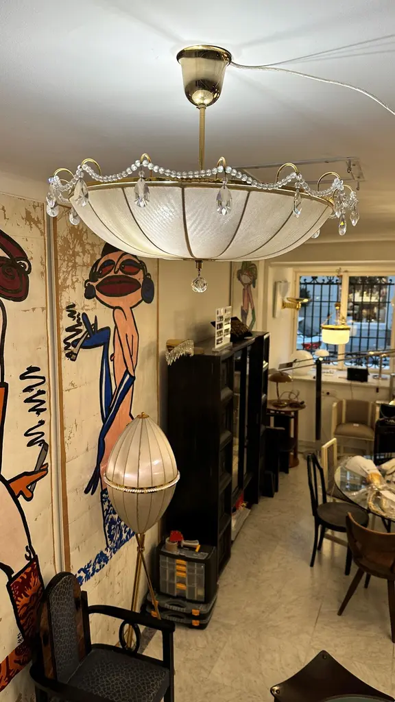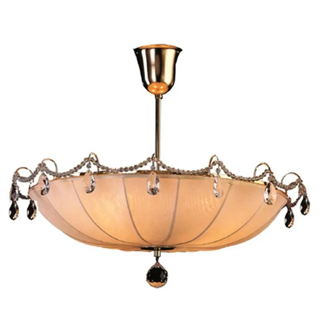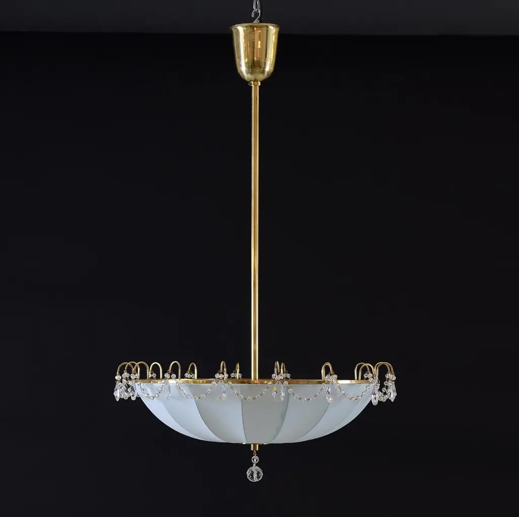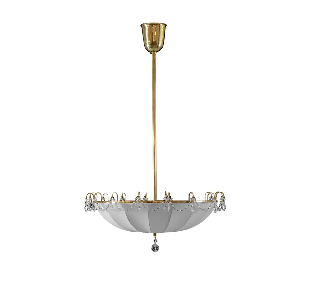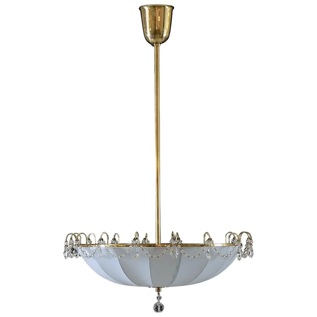 Mid-Century Modern Style Silk And Crystal Glass Umbrella Chandelier, Re-Edition