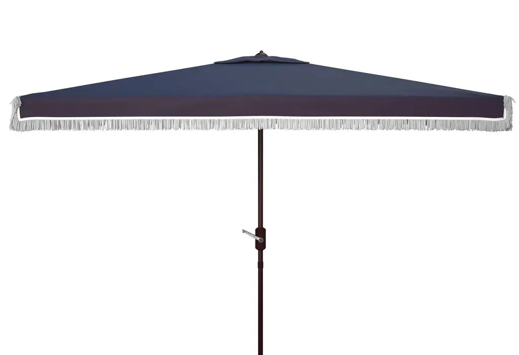 Milan Fringe 6.5 X 10 Ft Rectangle Crank Umbrella - Pat8308 - Navy/white - Safavieh