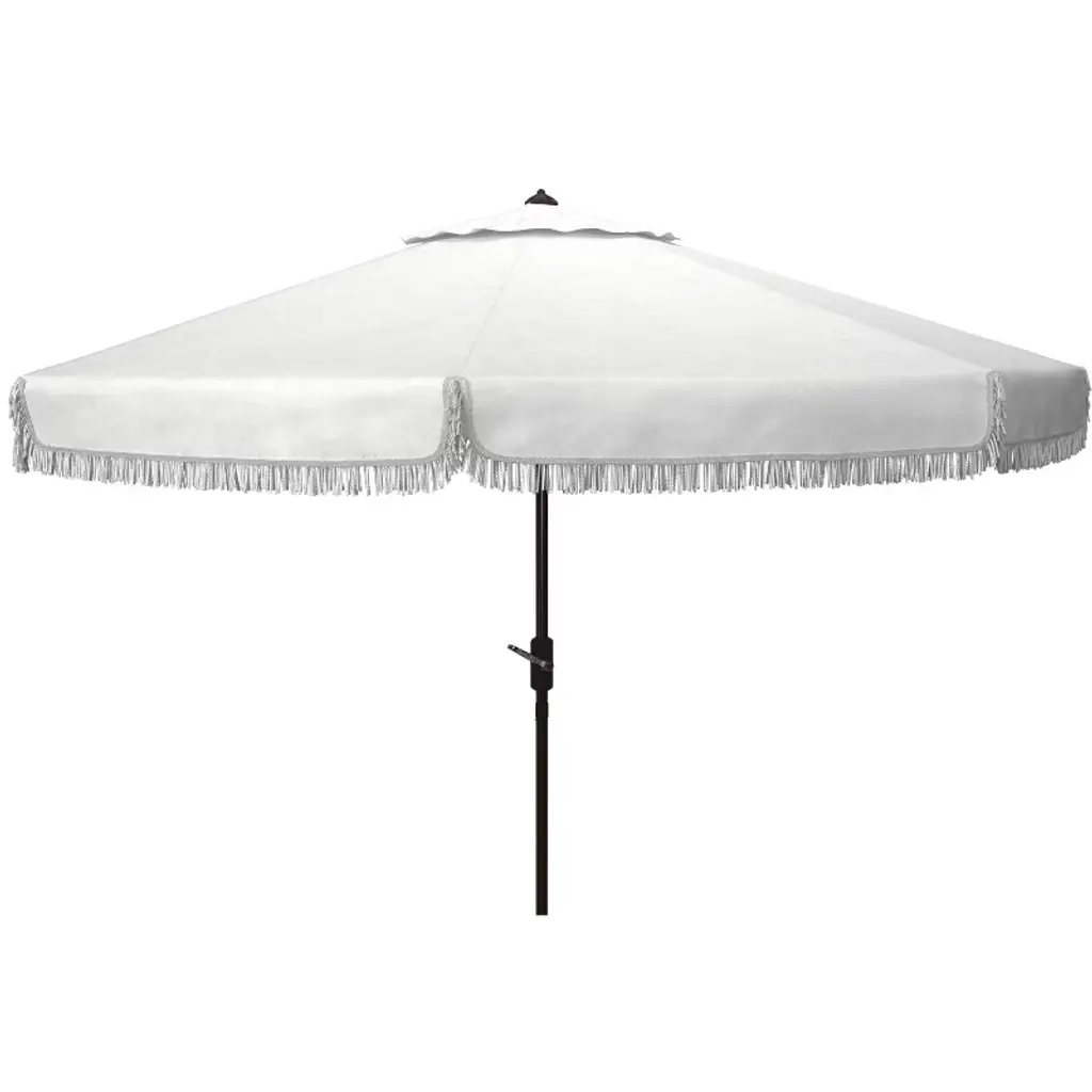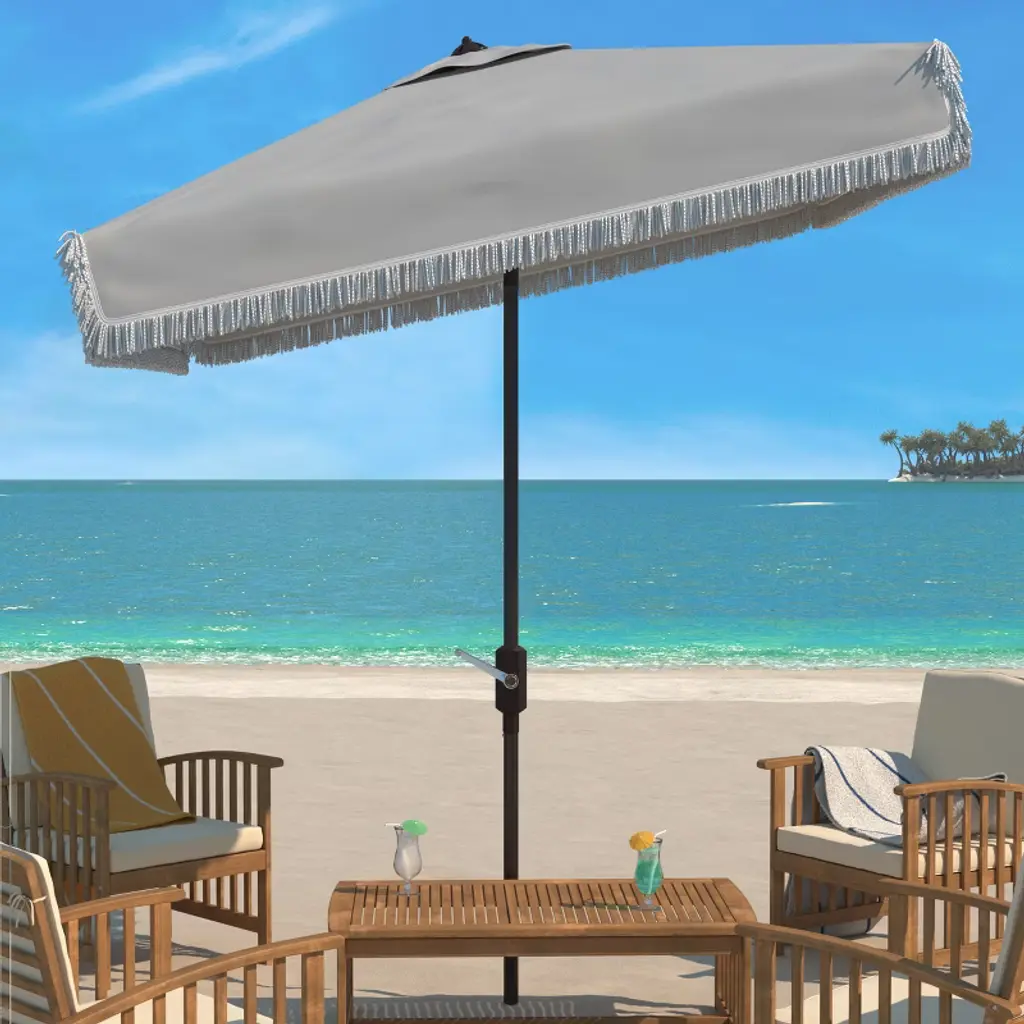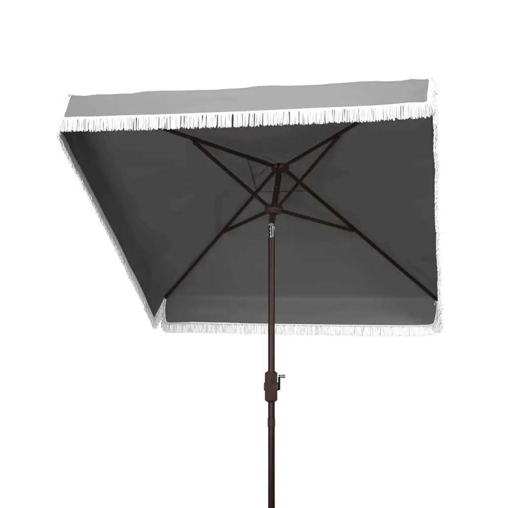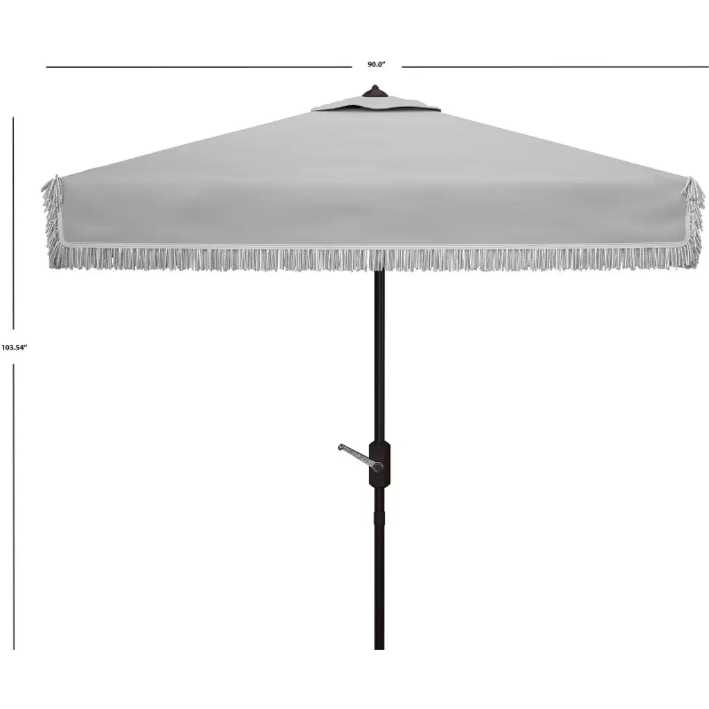Milan Fringe 7.5 Ft Square Crank Umbrella - Pat8408 - Grey - Safavieh