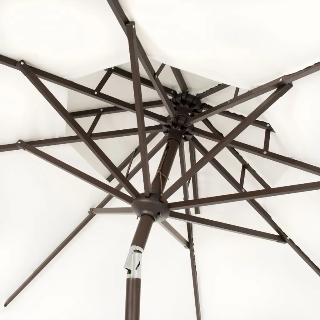 Milan Fringe 9Ft Double Top Crank Umbrella - Pat8208 - Ivory - Safavieh