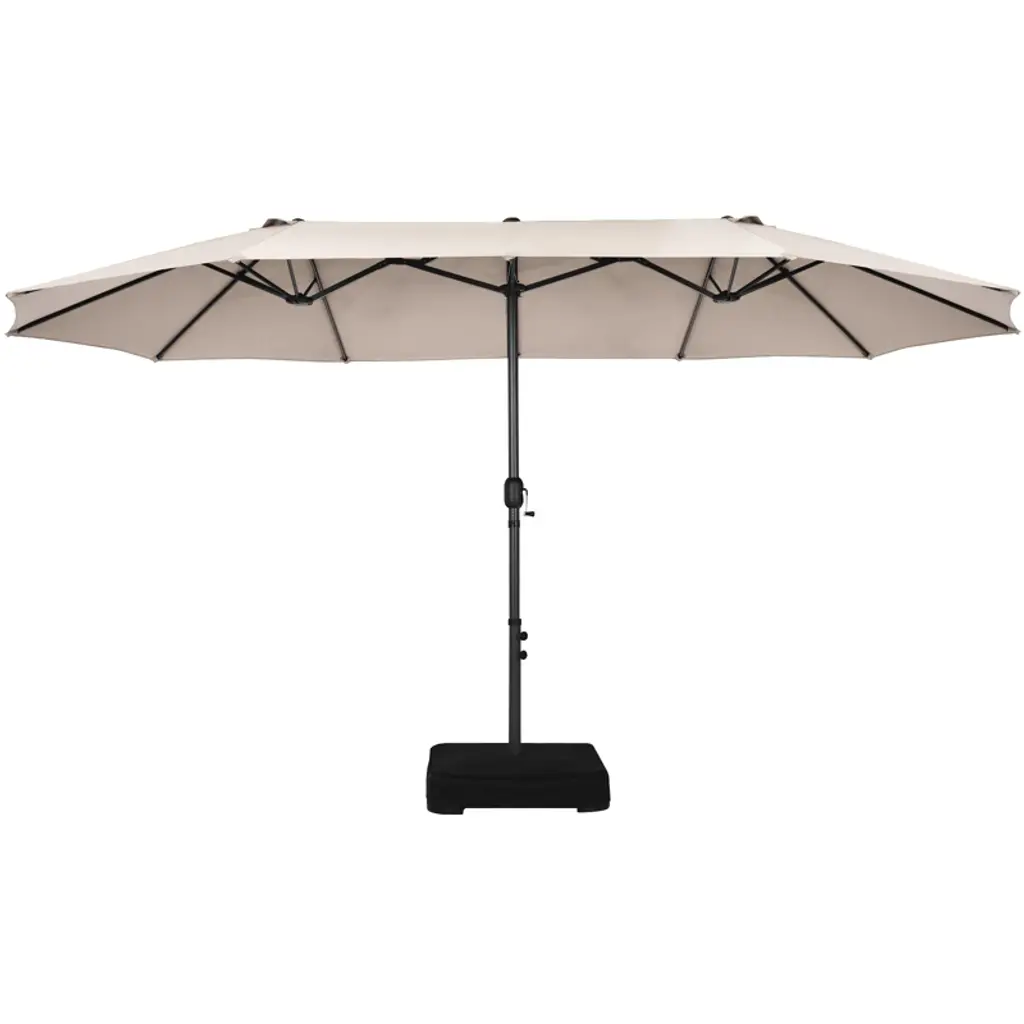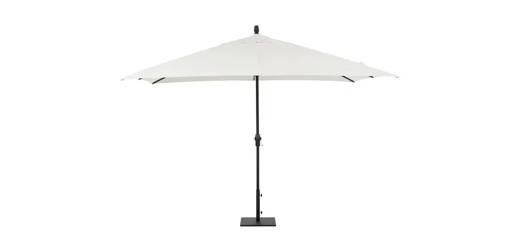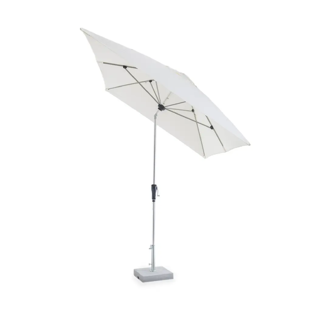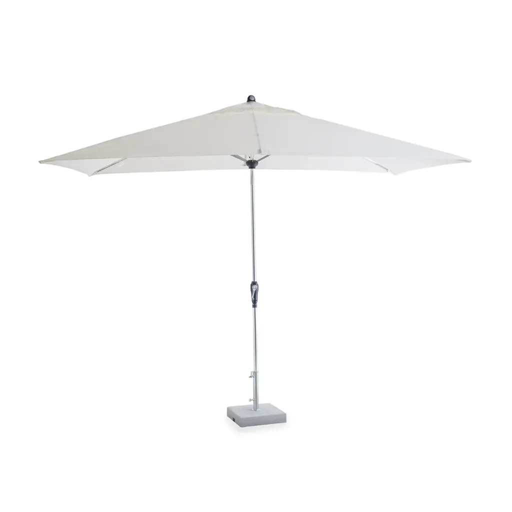 Elevate your outdoor space with the Modern Outdoor Umbrella | Unopiu Lipari. Its raw white cover, made from 100% polyester, measures 3m by 2m and stands at 264cm tall. Crafted with a sturdy aluminum frame, this parasol can withstand harsh weather while remaining effortlessly portable. With a simple press of a button, the cover can be tilted to provide shade wherever it's needed.
