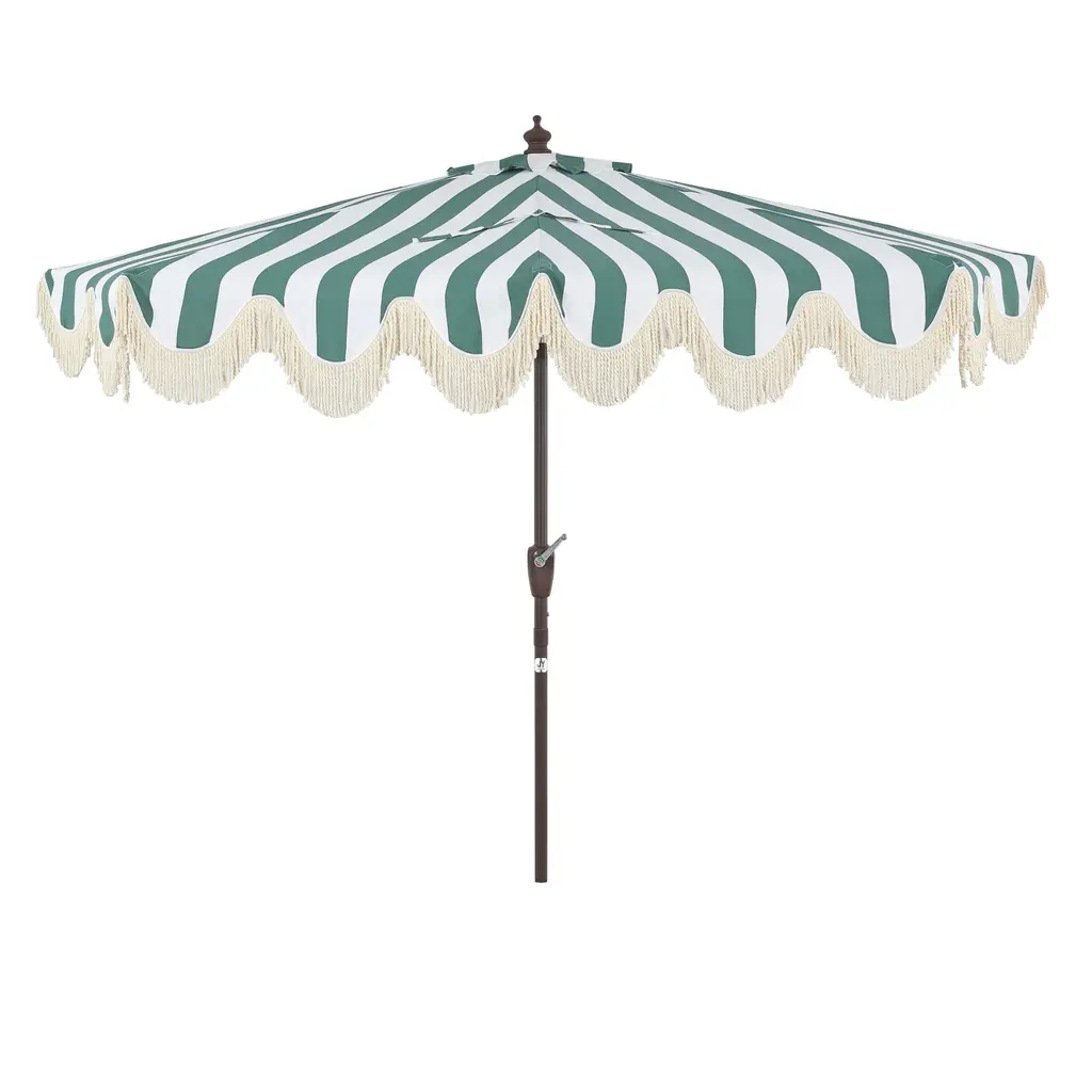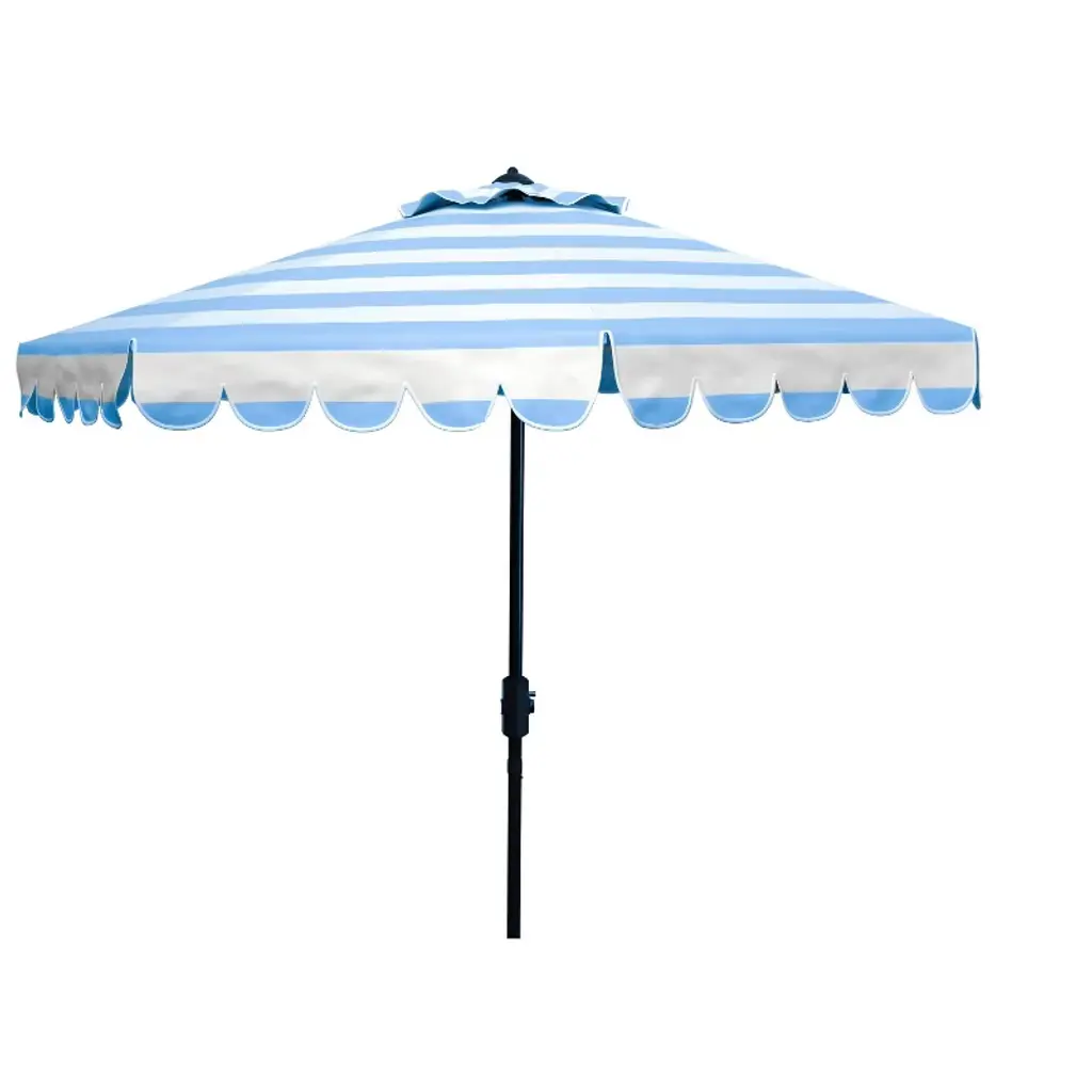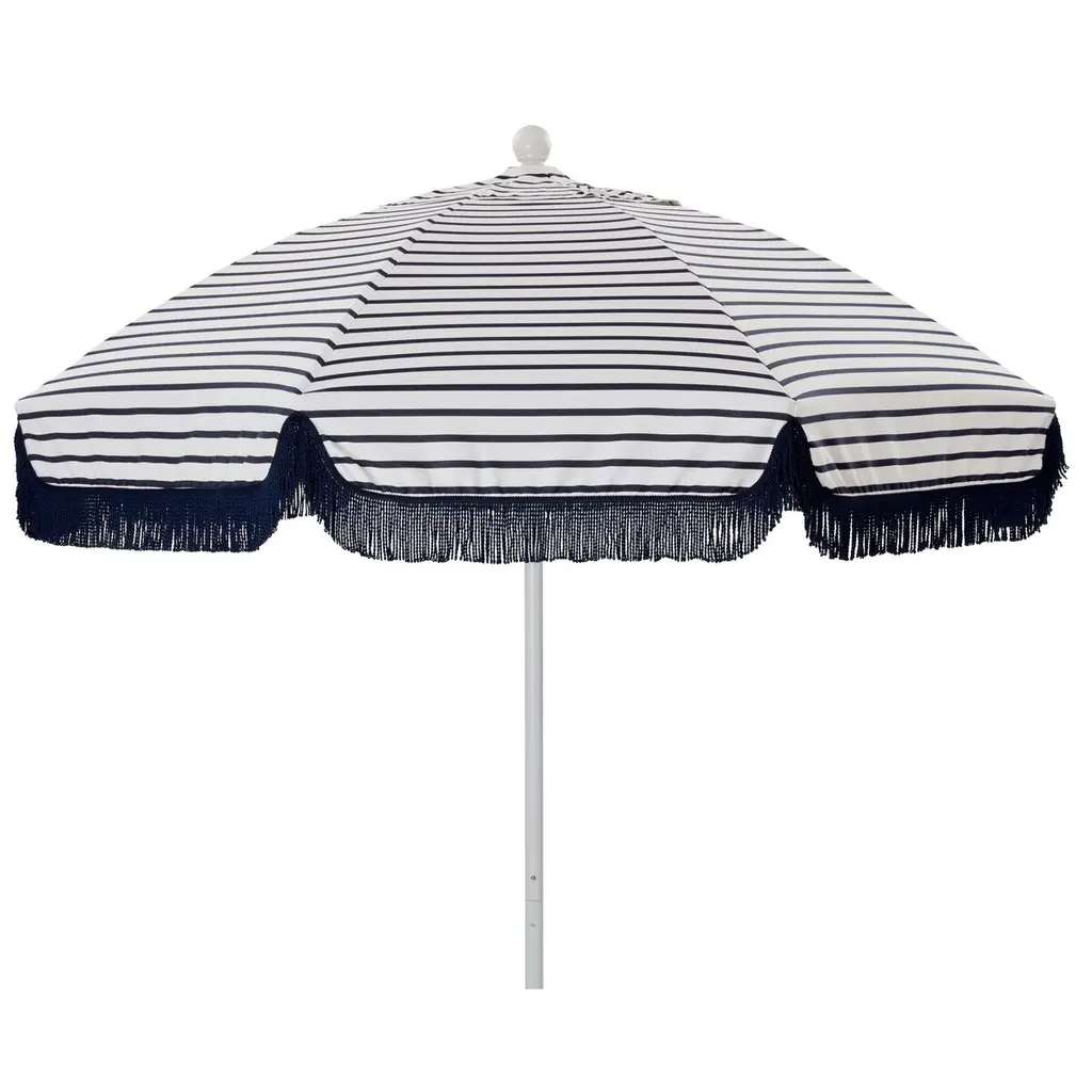 Umbrella for Beach: Summer at the beach can be a lot of fun, but not when you have to worry about UV and sun. The canopy of our portable beach umbrella can keep you cool with UV40+ protection. It features stylish fringed ruffles, giving it form and function. Portable Beach Umbrella: Pop this compact, portable picnic umbrella in your car and go for a ride with its convenient two-section design. This beach umbrella comes with a carrying bag, so travel is easy and organized. Easy to Assemble Beach Umbrella: When you reach the beach, assembling our compact umbrella is easy connect the sections together and insert the pole's pointed end into the sand. Outdoor Ready: This compact beach umbrella features a large vented canopy that helps it stay stable against the wind. It's made of outdoor-ready polyester fabric and a powder-coated steel frame with eight ribs for heavy-duty resistance to the inevitable sea breeze. Beach Umbrella for Sand Info: Overall Dimensions: 6.2' Dia. x 6.9' H. NOTE: Do not use our beach umbrella during extreme weather (strong wind, heavy rain, snow).