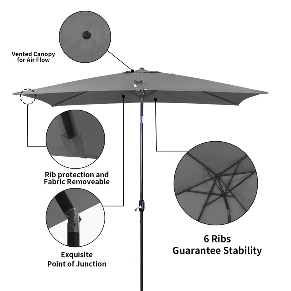 Transform your outdoor space with our 10ft Rectangular Patio Umbrella. Enjoy shade and easy tilt and crank for ultimate convenience. Elevate your poolside, backyard, or balcony experience today.
