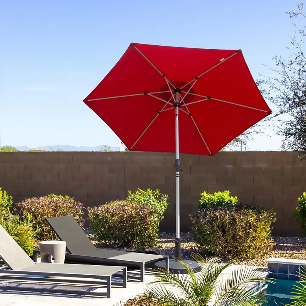 Enhance your outdoor experience with our 7.5ft patio umbrella. Built with a sturdy aluminum frame and 8 powder-coated steel ribs, it ensures superior durability. The high-density, UV-resistant polyester fabric provides excellent sun protection, while the easy crank lift and tilt feature offers effortless adjustments.