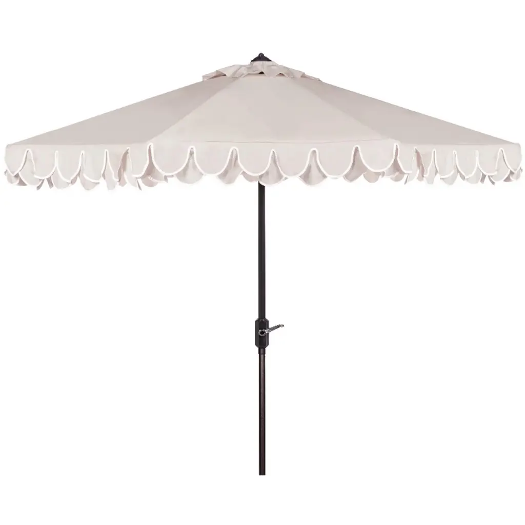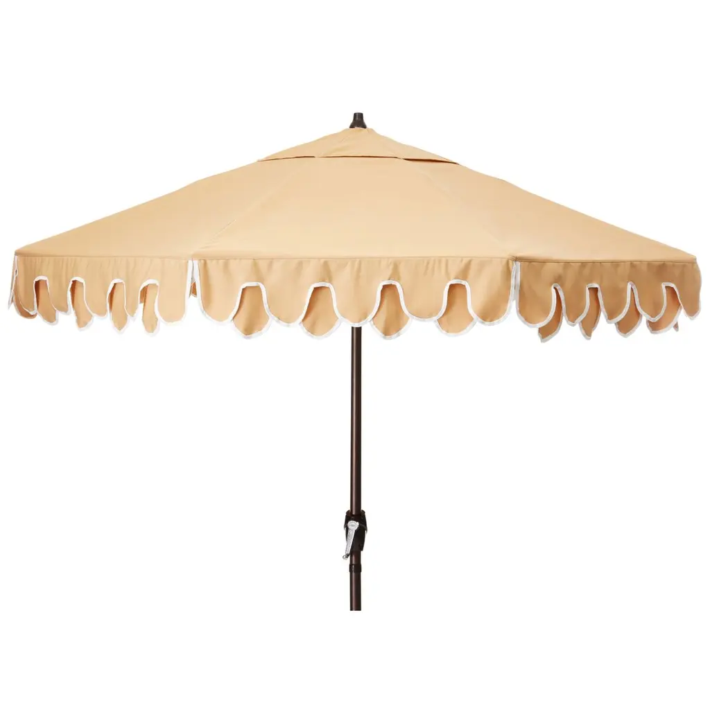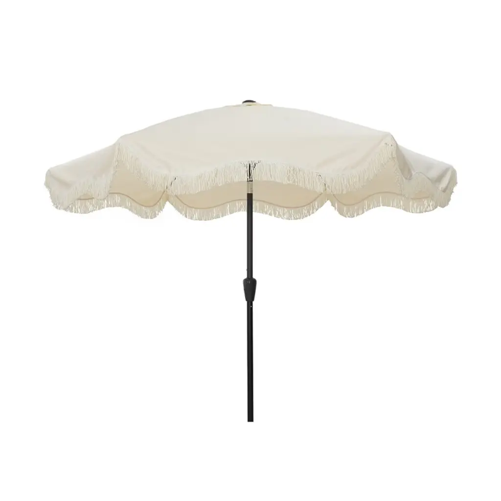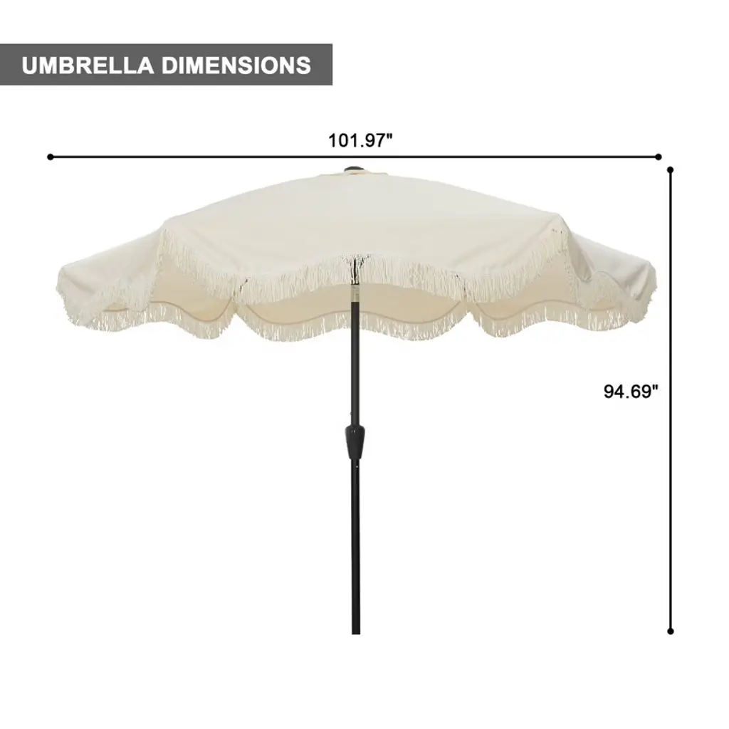 Mondawe 9 Ft. Crank Design Bohemian Tassel Style Outdoor Market Umbrella With Full Fiberglass Rib Tan