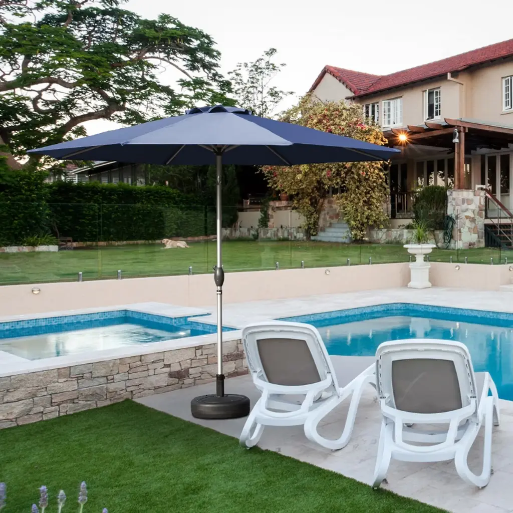Elevate your outdoor experience with our 9ft patio umbrella. Crafted with a robust aluminum frame and 8 powder-coated steel ribs, it offers superior durability. The high-density, UV-resistant polyester fabric provides optimal sun protection, while the easy crank lift and tilt feature allow for quick adjustments.