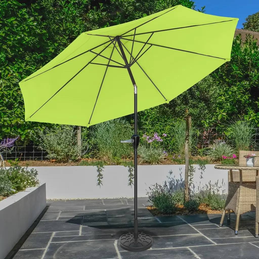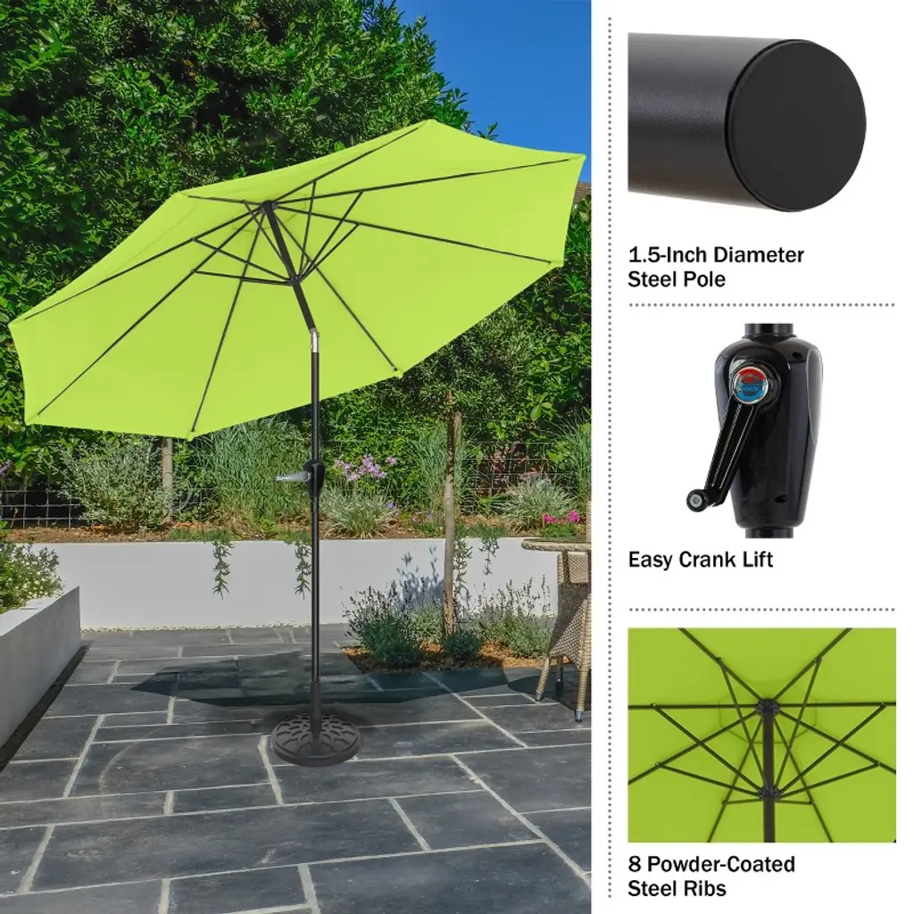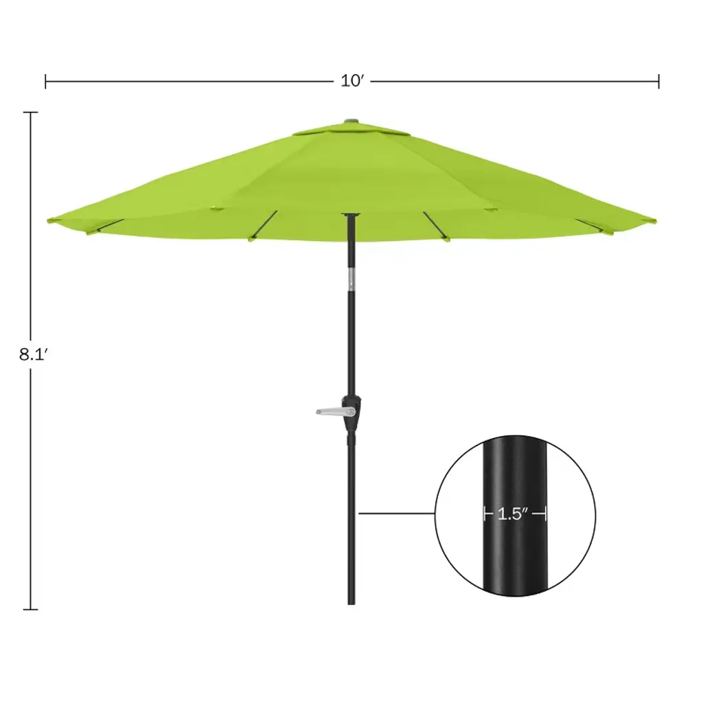 Create comfortable shade for your next backyard get-together with the help of the 10-Foot Patio Umbrellas by Nature Spring. The easy-to-use hand-crank opens and closes the large patio umbrella in seconds while the convenient auto-tilt feature blocks sunlight from dawn till dusk, so you can relax in the shade during hot summer days. This lime green umbrella fits tables and patio bases with a 1.5-inch diameter, providing enough shade for picnic table sets for four to six people or to shade part of your pool for pleasant swimming and relaxation on balmy days.