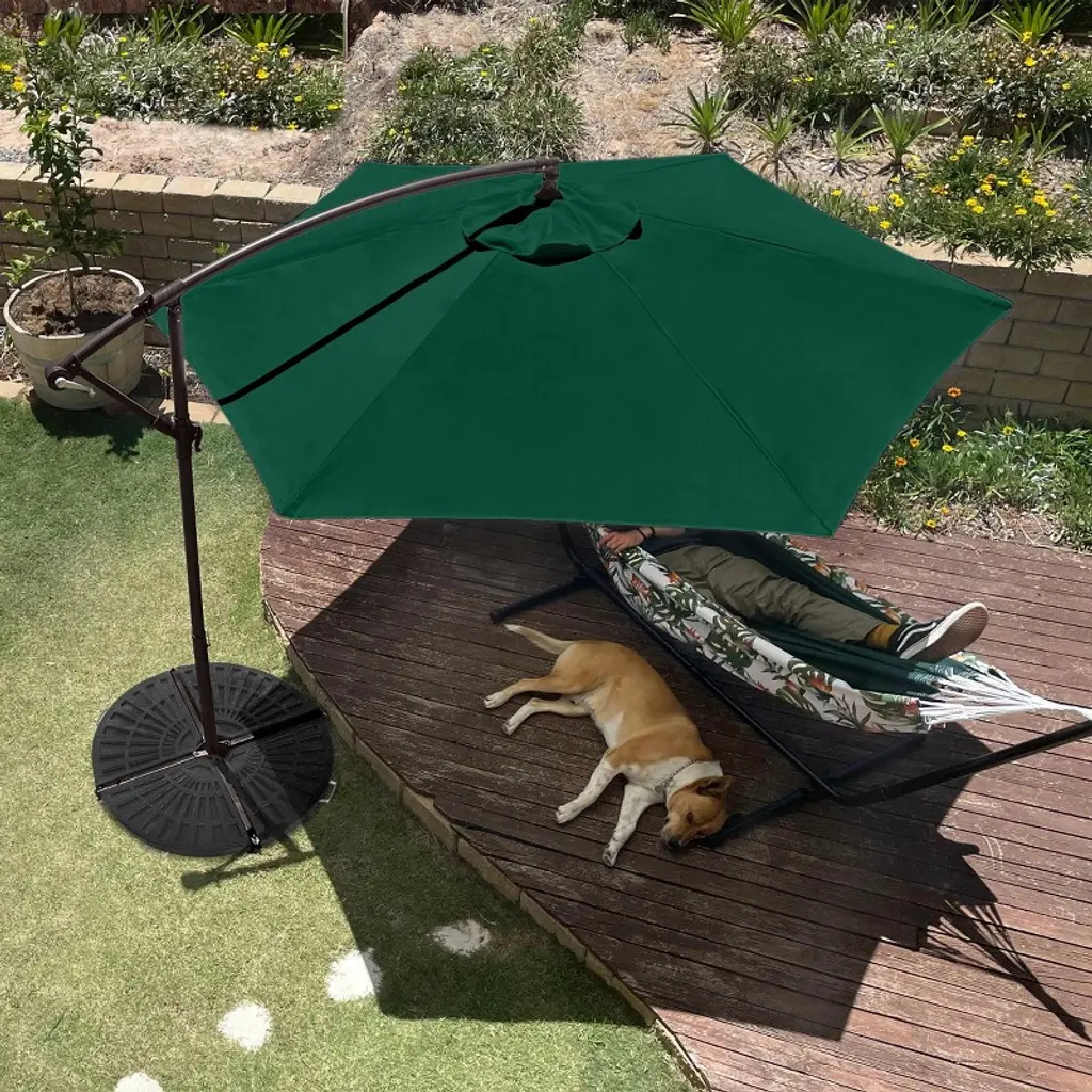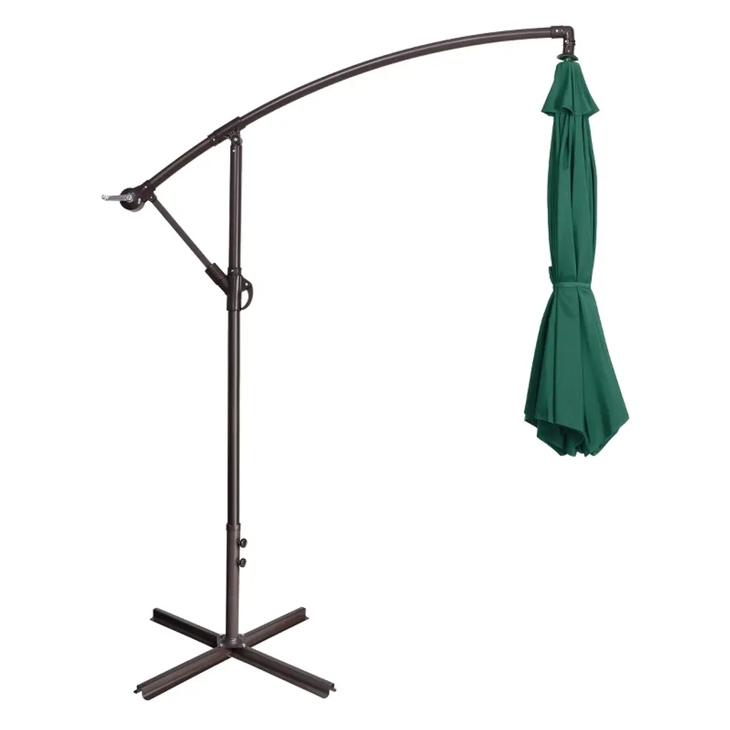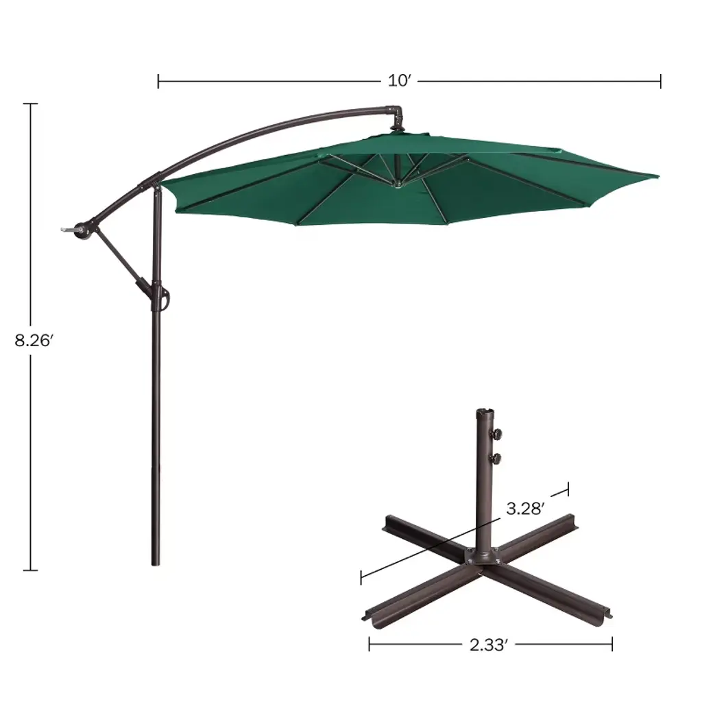 Create a cool and comfortable spot to entertain guests under an attractive piece of outdoor decor with the 10’ Hanging Umbrella Patio Shade by Nature Spring. The easy-to-use hand-crank opens and closes the large patio umbrella in seconds, and the convenient handle allows you to adjust the vertical tilt of the pool umbrella in 5 positions, providing protection from angled sunlight. Simply crank the deck umbrella closed when not in use and use the built-in strap to secure it to the pole. This large outdoor umbrella includes a stable cross base that is made with durable steel for superior value