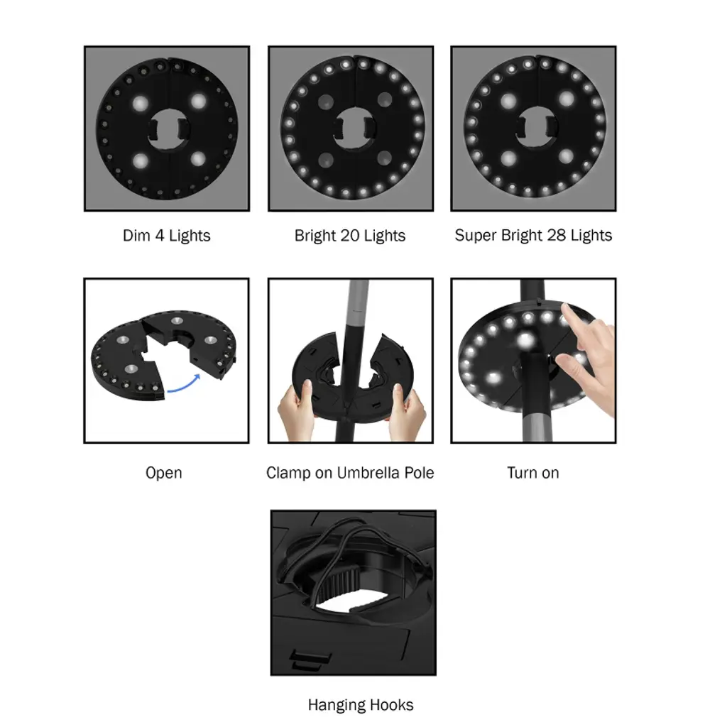 The Outdoor Battery Operated Lights by Nature Spring pair nicely with your current outdoor patio table and umbrella to shed some light on your guests while entertaining. The cordless LED lights battery operated feature 28 LED lights at 200 lumens and 3 levels of brightness, offering a suitable alternative to other outdoor lighting products. Whether you have an umbrella with a center or offset pole on your deck, at the beach or the backyard, these handy umbrella lights will provide plenty of illumination wherever you go, making it a perfect addition to your patio décor.