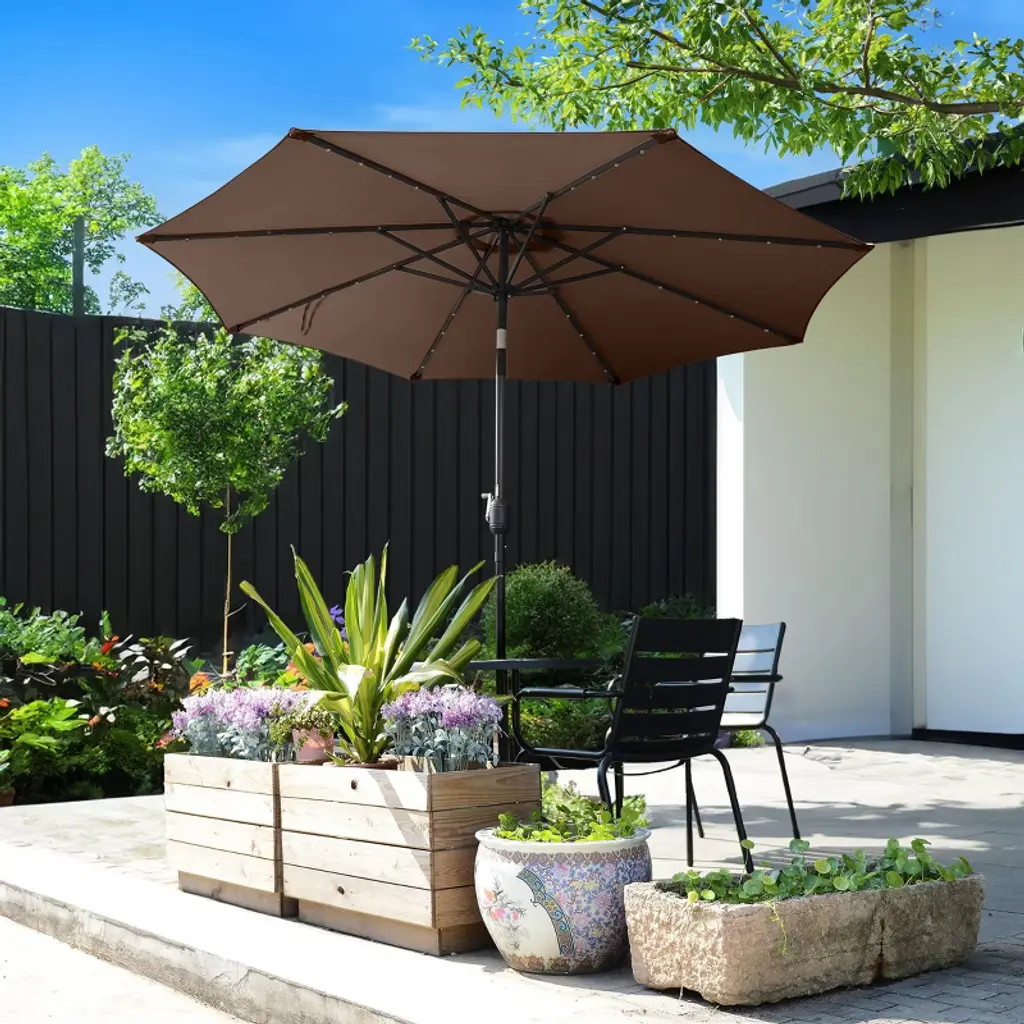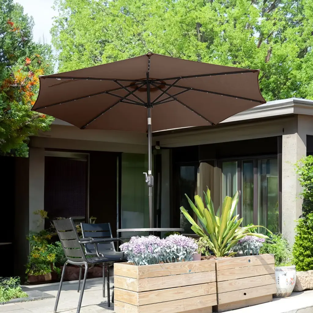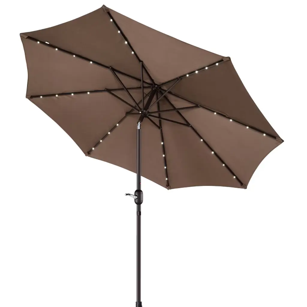 Nature Spring Patio Umbrella With Led Lights, 5-position Vertical Tilt, 9' - Brown
