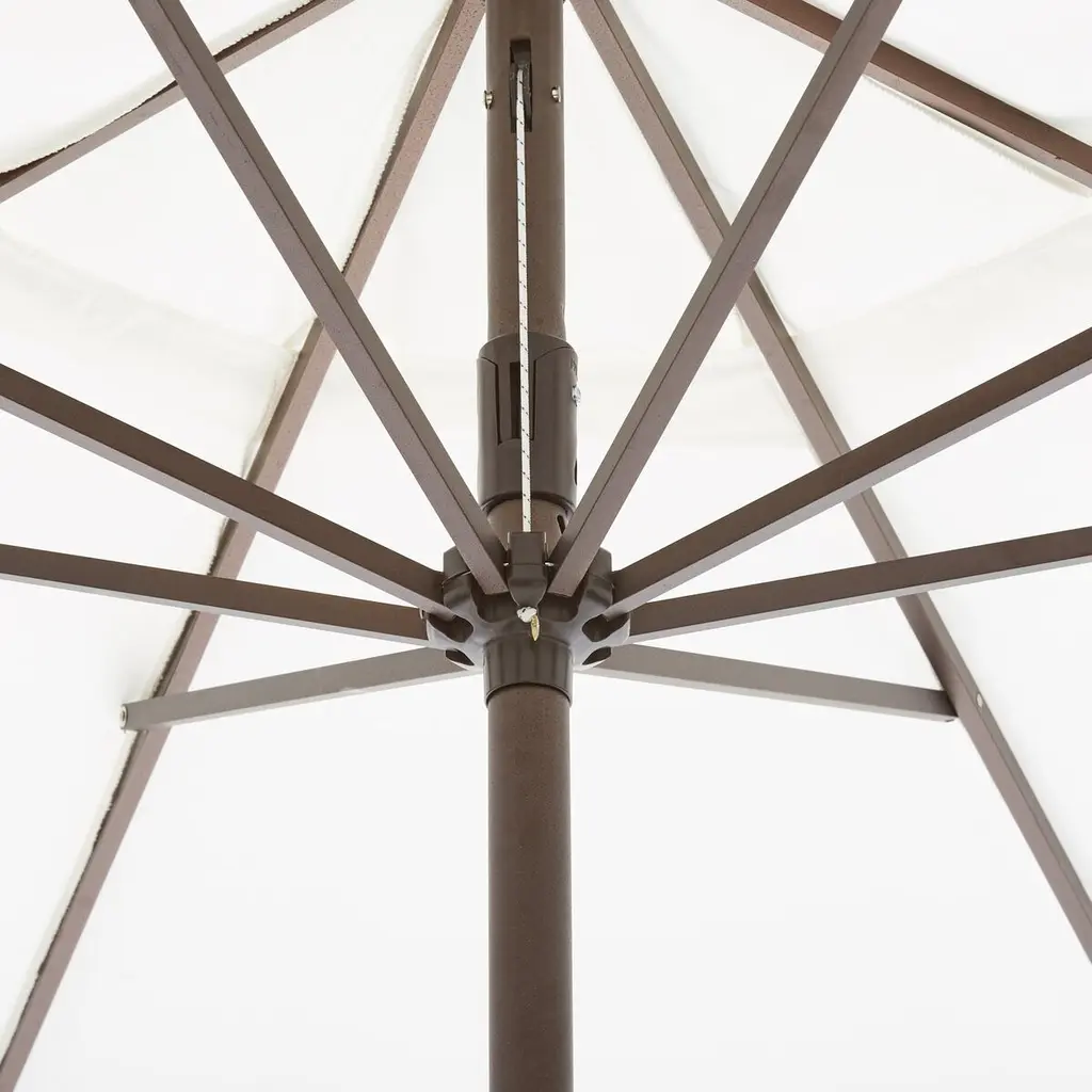 Designed by us and available only at One Kings Lane: Whether you're entertaining or just lounging outdoors, catch some shade in style with this patio umbrella. Its canopy is crafted from durable Sunbrella acrylic to protect against the elements, while its frame is made using a combination of sturdy aluminum and zinc plated steel and features a tilt-and-crank function. An umbrella base is not included but is required for use.
