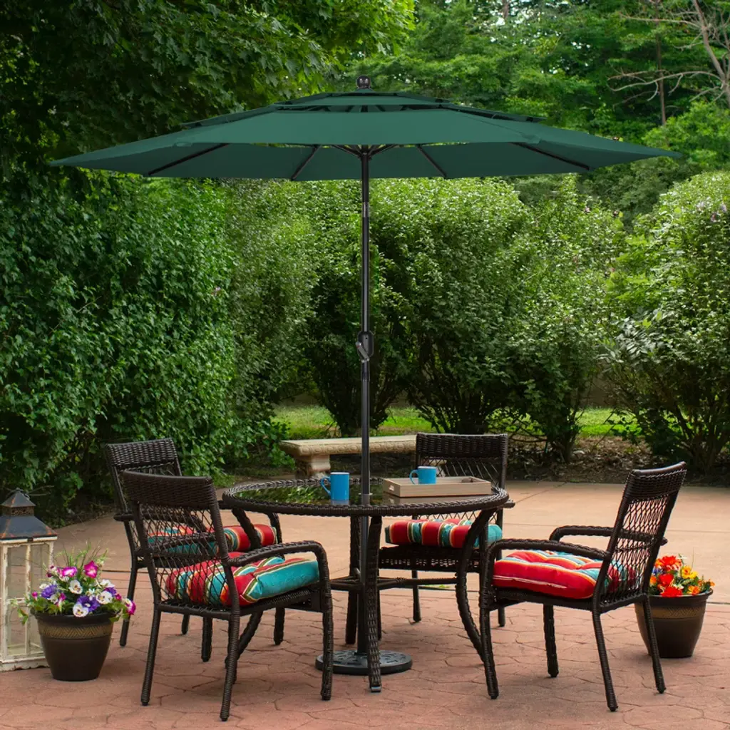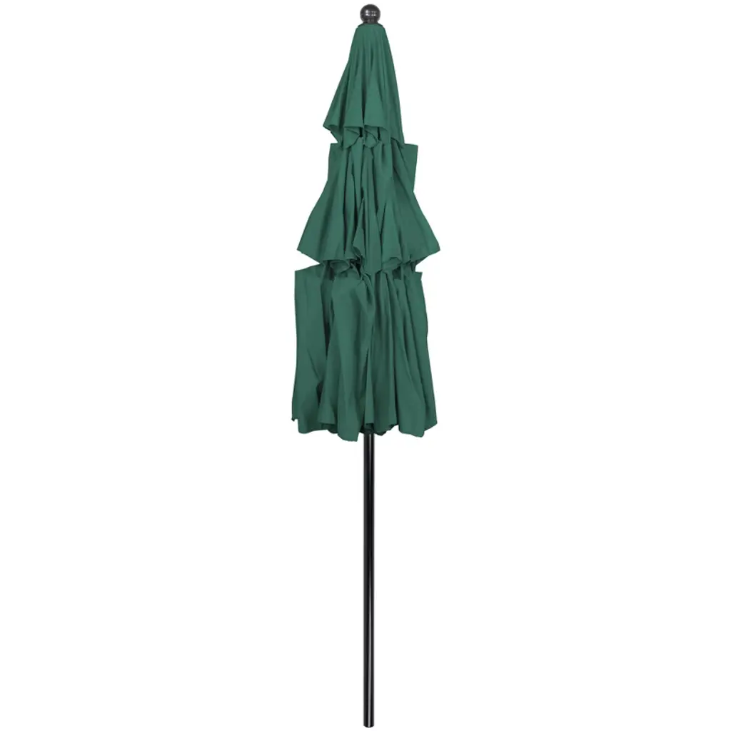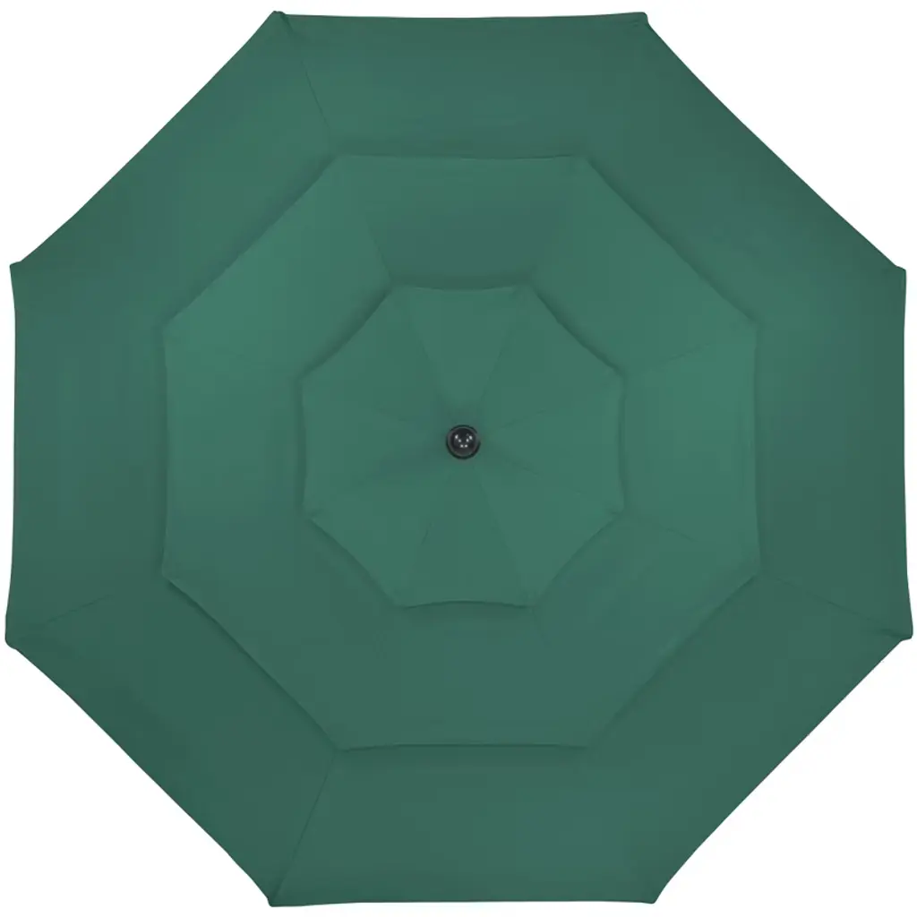 Stay shaded and cool this summer with our moderately sized market umbrella. Ideal for covering a 48-inch or four-person dining set. Features a sturdy, powder-coated aluminum frame with steel ribs, built to last a lifetime. The crank opening and push-button tilt mechanism allows for ease of use. Features: Umbrella shape: octagon Canopy color: green Frame and pole color: black Diameter of open umbrella: 9.75' Height: 8.25' Pole diameter: 1.5" (38mm) Lift: hand crank Tilt: push-button tilt 8 ribs Material(s): 160 gram polyester canopy/powder-coated aluminum pole/steel ribs Note: Umbrella only, base is not included