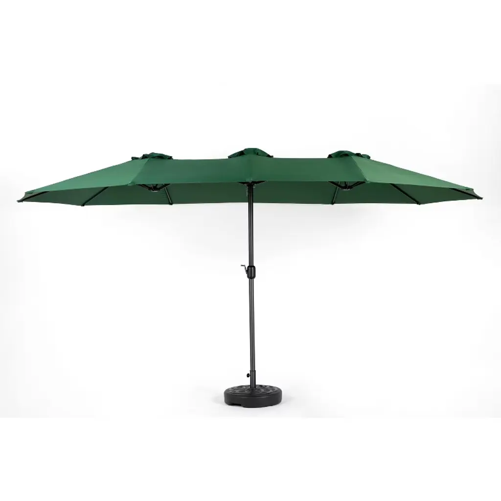 Okak 14.8 Ft Outdoor Patio Umbrella With 12 Sturdy Ribs Double Sided Beach Umbrella With Push Button And Crank For Pool Deck Garden, Dark Green