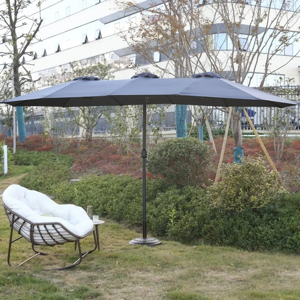 Okak 14.8 Ft Outdoor Patio Umbrella With 12 Sturdy Ribs Double Sided Beach Umbrella With Push Button And Crank For Pool Deck Garden, Navy Blue