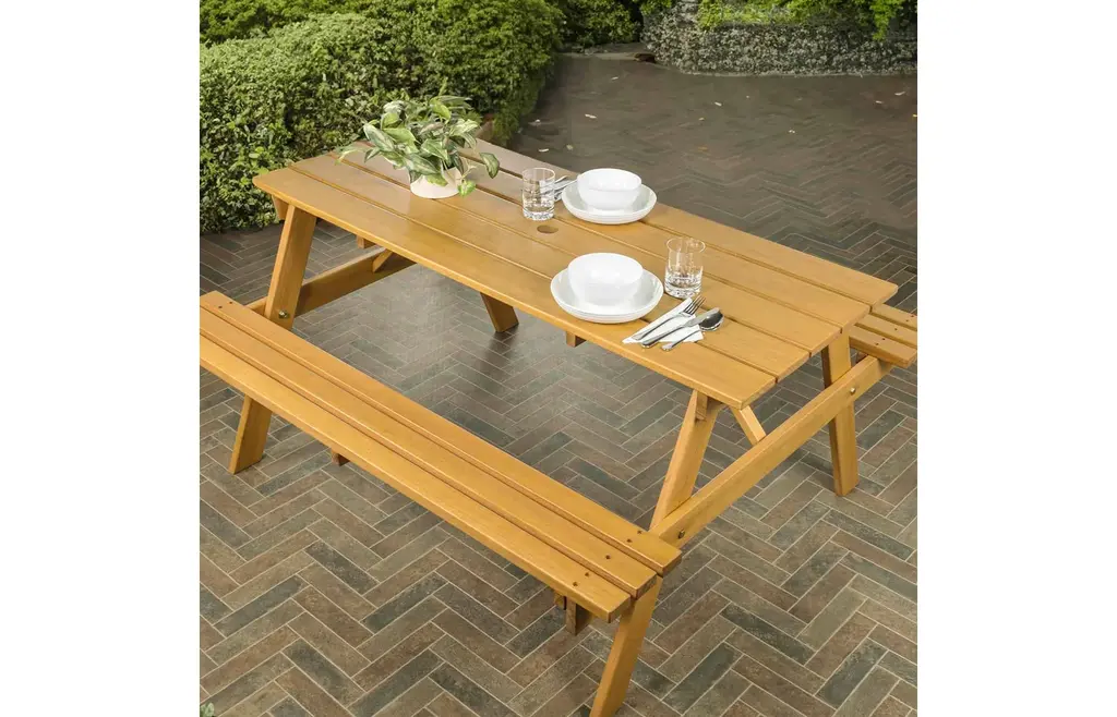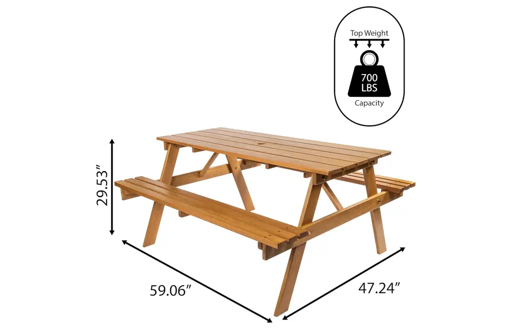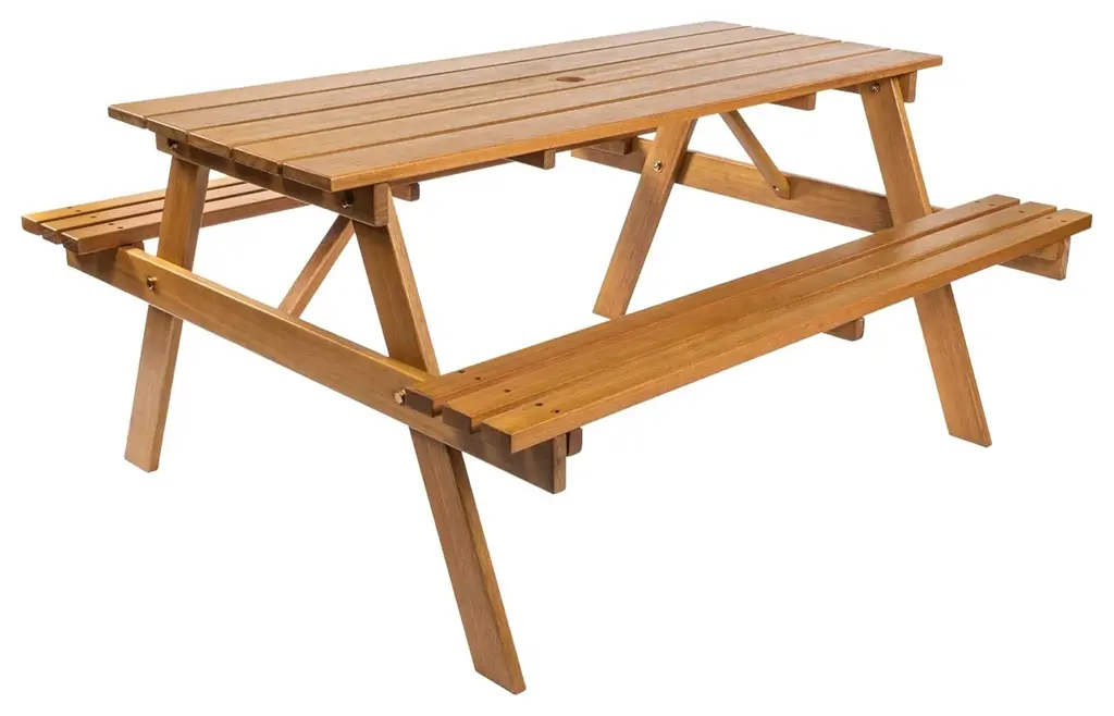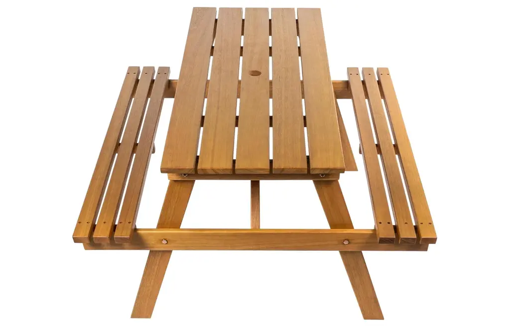 Outdoor Dining Set, Table With Umbrella Hole/integrated Benches, Teak Brown
