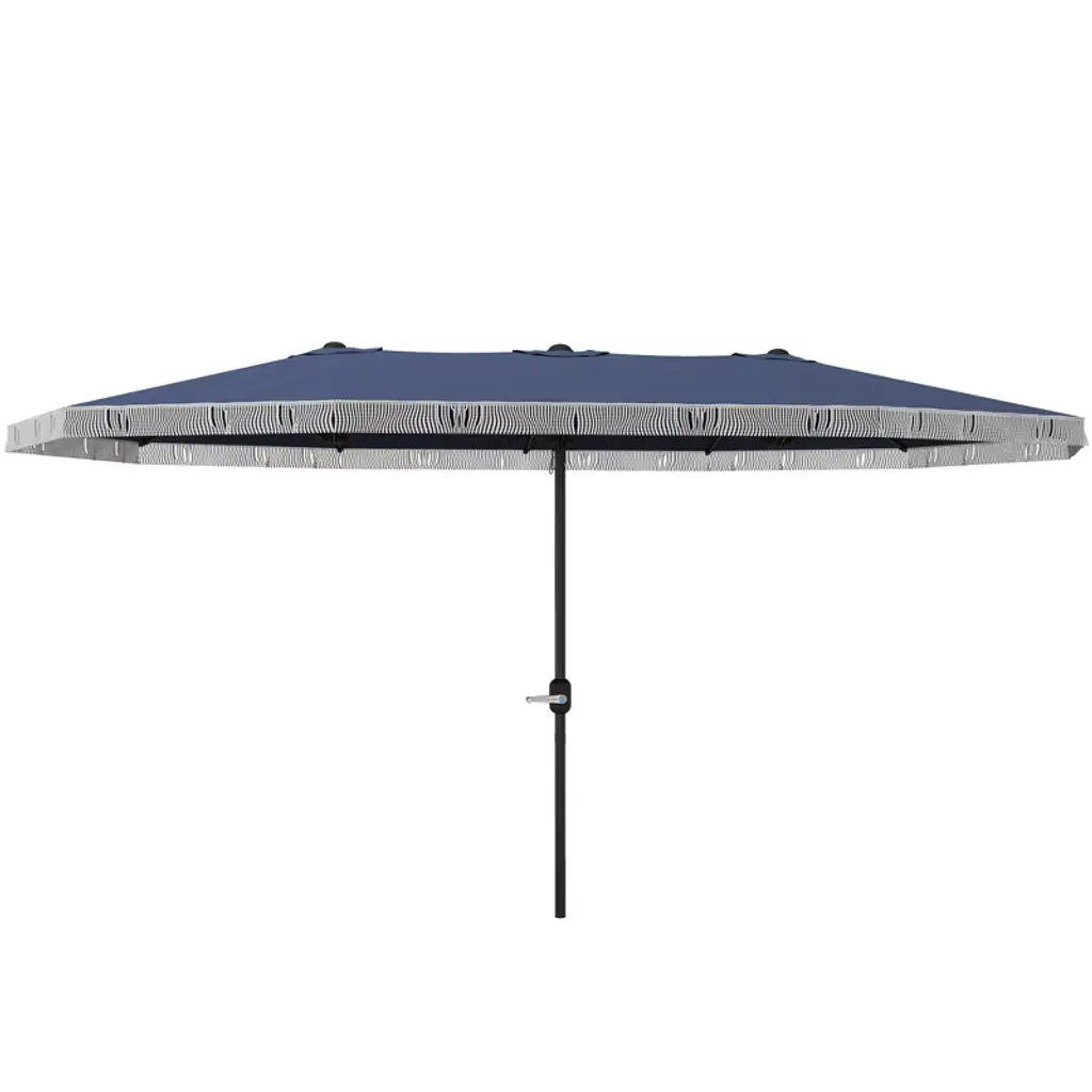 Experience the luxury of expansive shade with the Outsunny Double-Sided Umbrella. Spanning 15ft with a UPF30+ coating, this extra-large patio umbrella offers superb protection from the sun. Its easy crank lift system ensures a smooth opening and closing. At the same time, the splash-resistant, UV-resistant polyester fabric maintains its color, giving you a stylish and functional addition to your garden or patio.