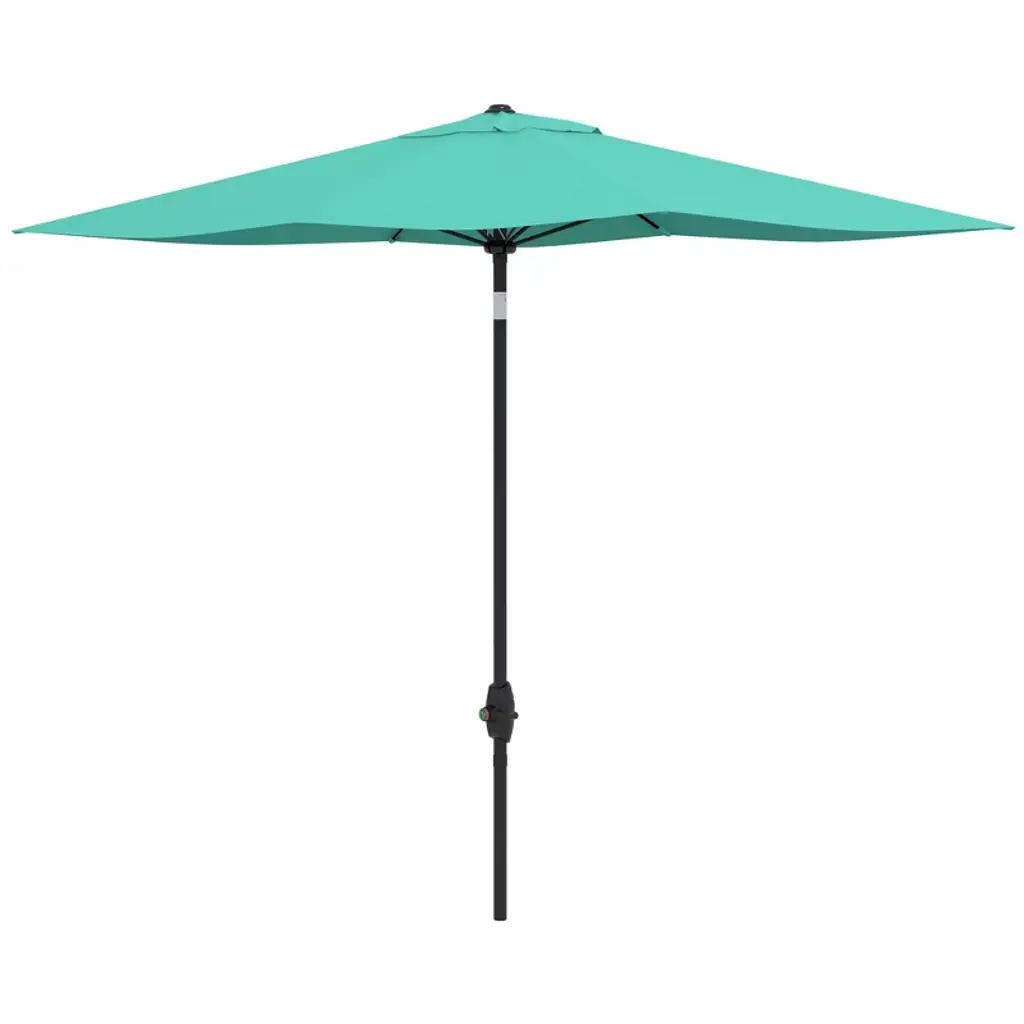 Outsunny 6.5' X 10' Rectangular Market Umbrella, Patio Outdoor Table Umbrella With Crank And Push Button Tilt, Teal
