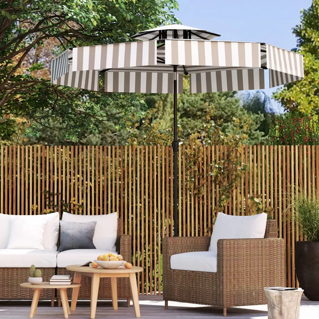 Outsunny 8.6ft Patio Umbrella, Upf 30+ Outdoor Market Umbrella, 2-tier Vented Patio Table Umbrella With Crank, 8 Ribs, Push Button Tilt, Light Gray