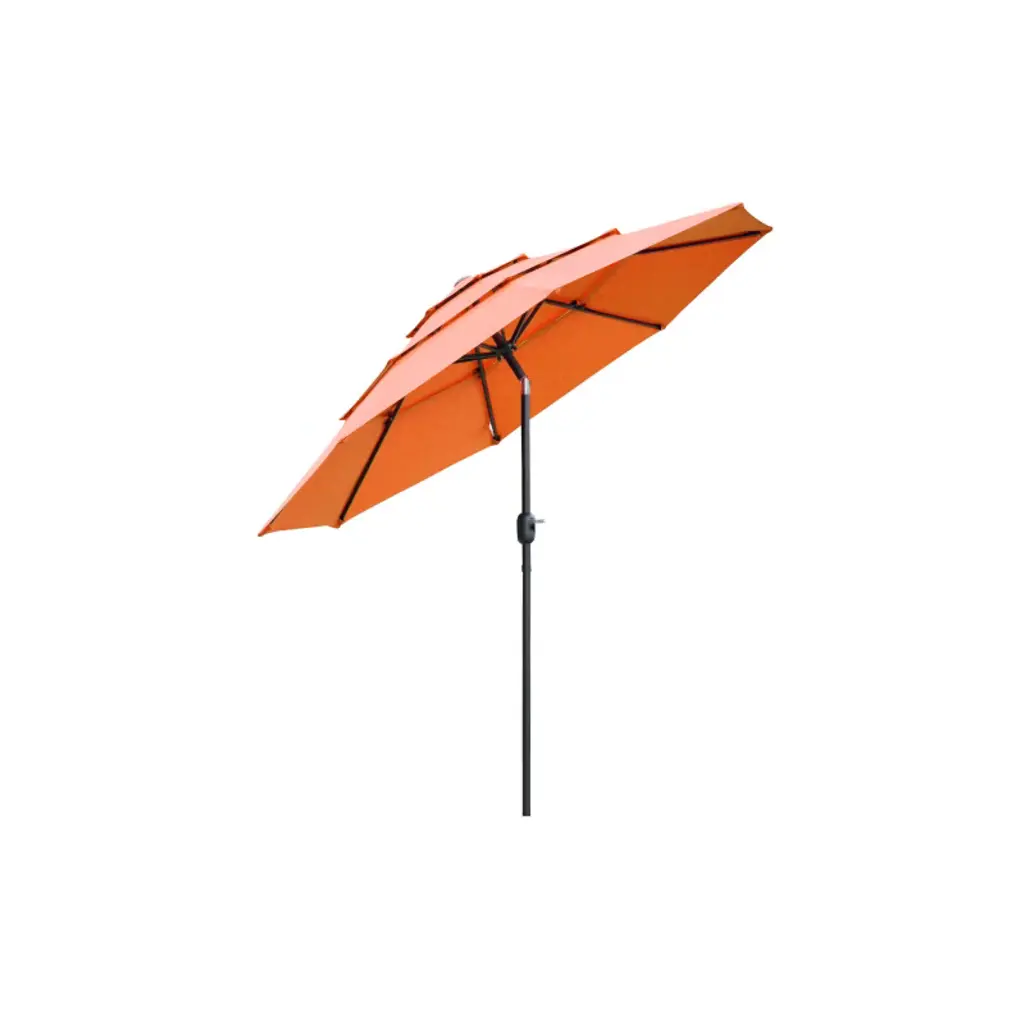 Outsunny 9' 3-tier Patio Umbrella, Outdoor Market Umbrella With Crank And Push Button Tilt For Deck, Backyard And Lawn, Orange