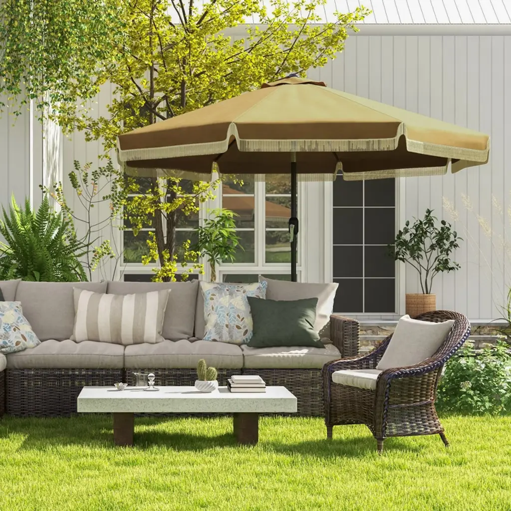 Like to read in the great outdoors? Enjoy picnics out in the summer breeze? Have a table for an umbrella but no umbrella? Say goodbye to sunburns this summer with Outsunny. This ruffled outdoor umbrella offers you ample shade from UV at an angle you control. Use its tilting top to get rid of glare from anywhere. It's a large outdoor-ready patio umbrella with polyester fabric and a sturdy steel frame to provide soothing shade throughout the summer. Get out, get comfortable, get Outsunny.