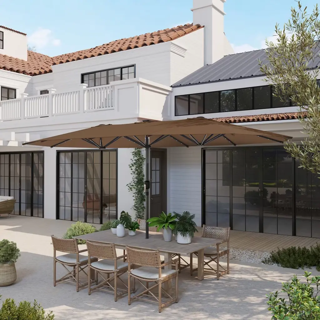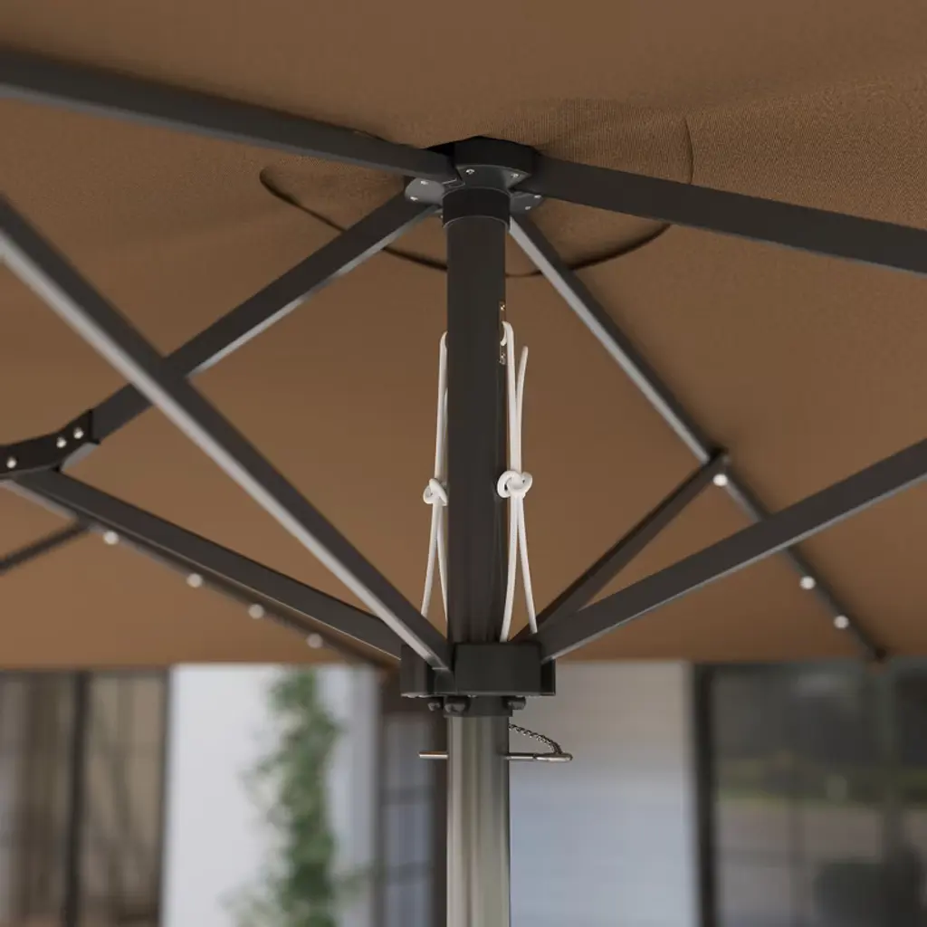 It's time for your garden to shine with this double-sided parasol from Outsunny. A stylish design, the market parasol features 48 lights on the frame ribs to light up your outdoor seating when dark. The garden double parasol creates plenty of shade, protecting you from direct sunlight. Using a crank mechanism for effortless opening and closing. This LED lighted garden parasol is a great go-to item for you and your family and friends to relax in the summer.