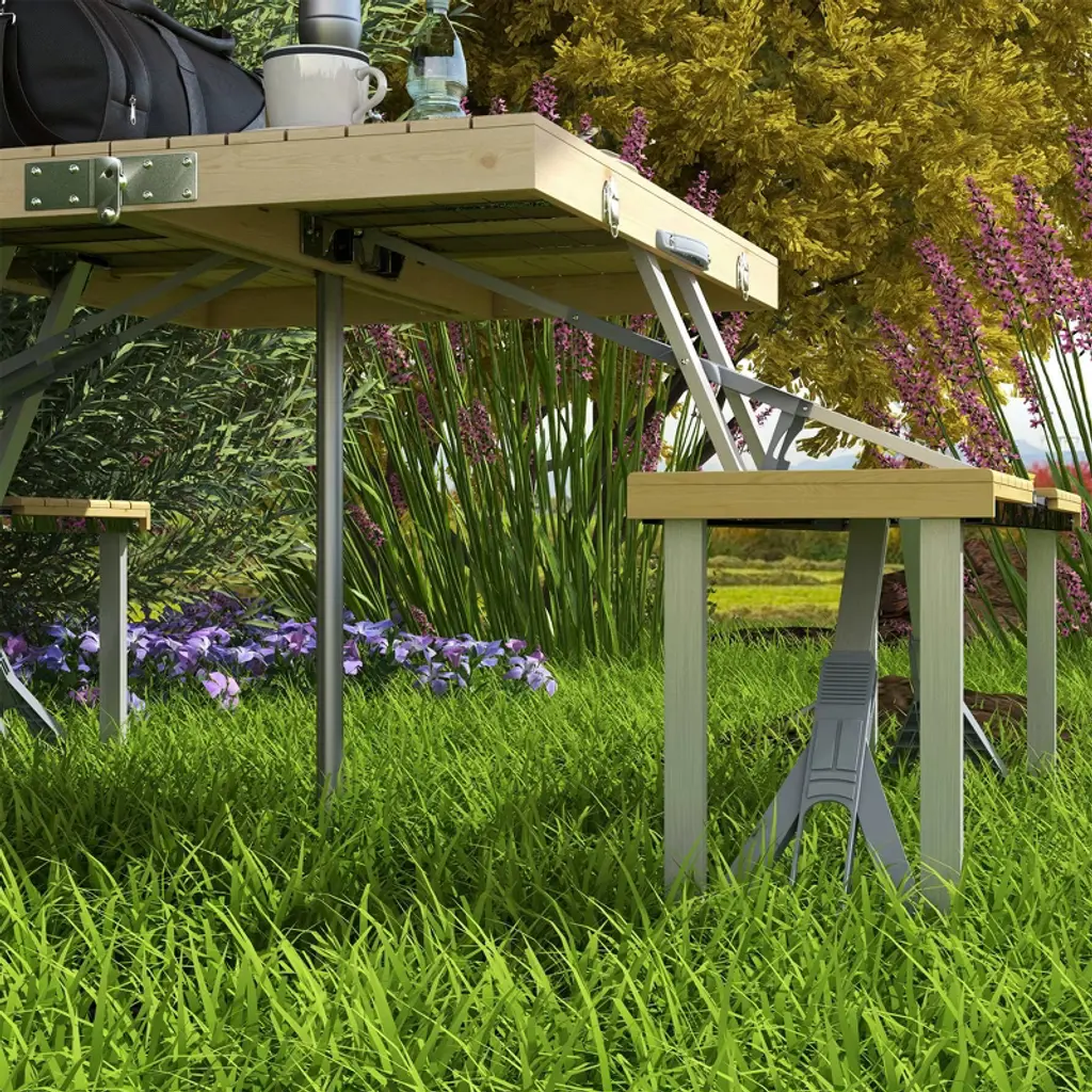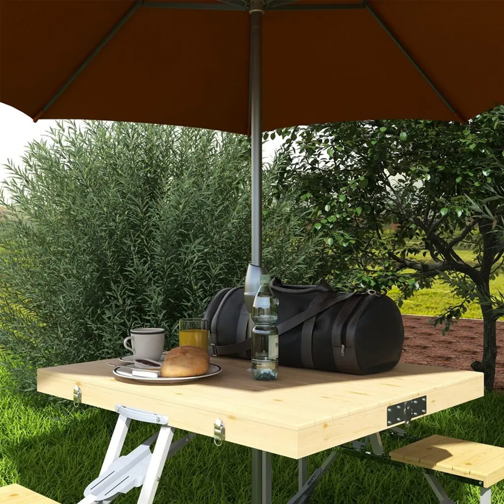 Want to make it a day to remember? Add this folding table and chairs set from Outsunny to your family's collection to make setup, transport, and storage a breeze. It folds down, so it's a snap to bring it with you on the go. You'll appreciate the built-in umbrella hole, which allows you to provide shade on mainly sunny days. It's handy for any activity, whether camping, spending a day together at the park, or catching a bite to eat outdoors.