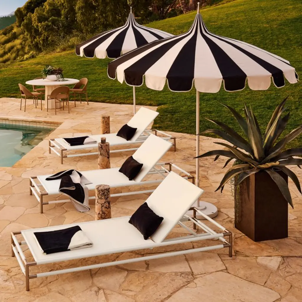 Pagoda Round Black & Natural White Stripe Outdoor Umbrella With White Pole