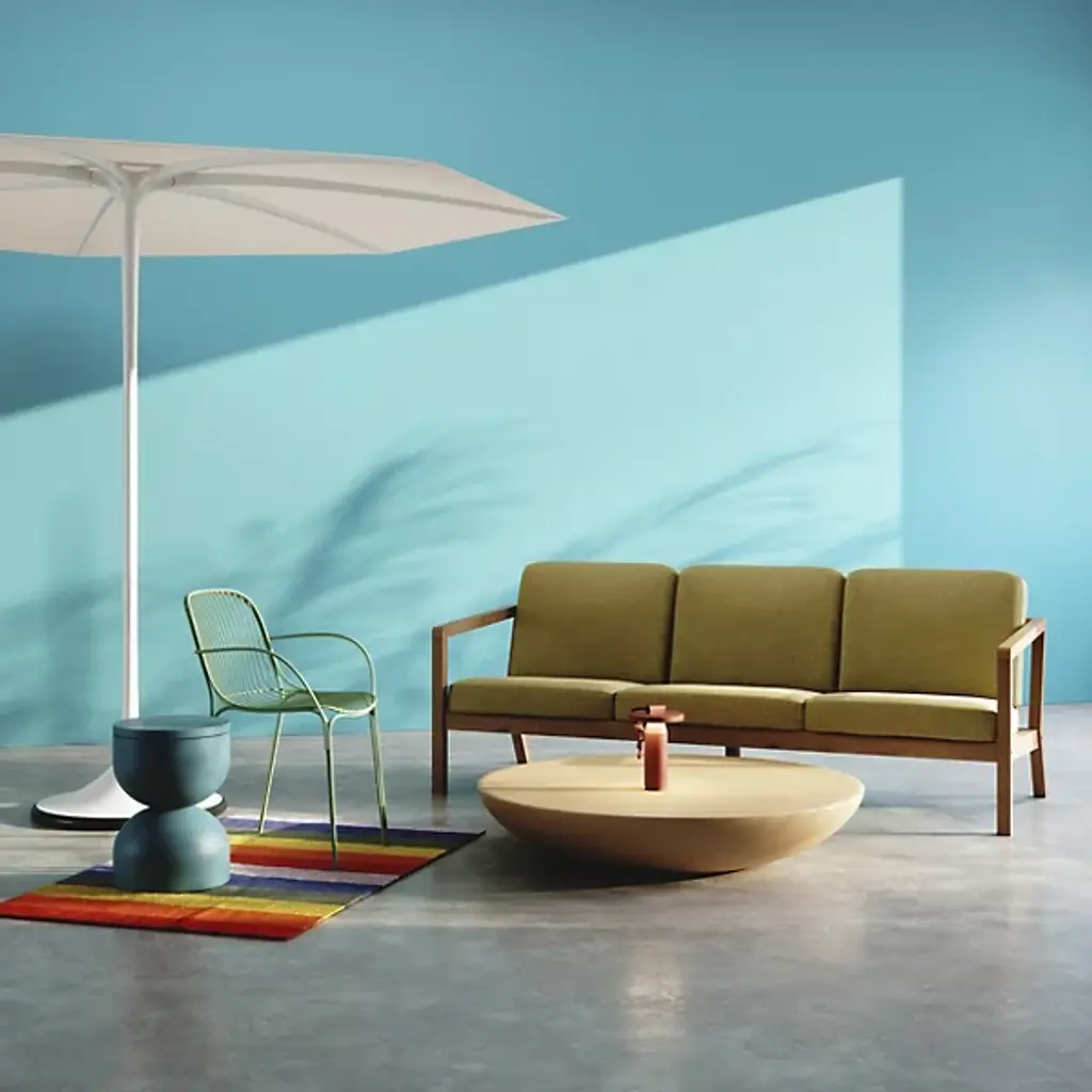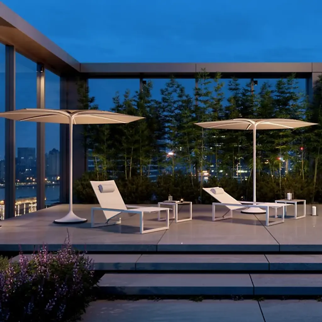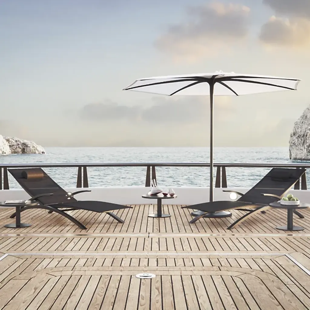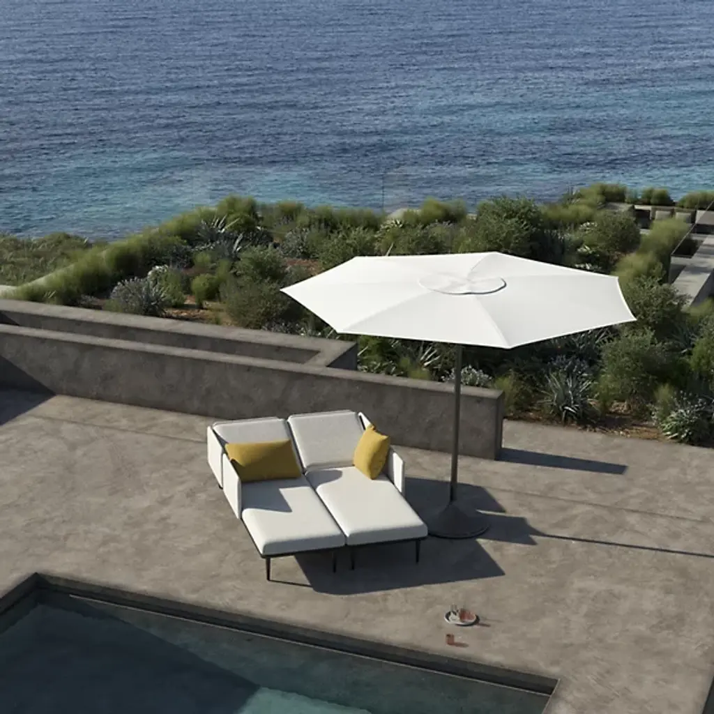 A red dot award-winning piece, the Palma Umbrella with Frame from Royal Botania provides us with plenty of shade like its namesake with an elegant and innovative design. Inspired by a time sheltering under a palm tree, creator Kris Van Puyvelde brings a comfort and craftsmanship-first mindset to this piece. It sets itself apart with a sculptural framework that's free from struts. The powder-coated aluminum structure lets the piece achieve nature-inspired curves while maintaining outdoor durability. Contrasting against traditional umbrellas, this piece opens and closes on its own by simply tugging one of the arms. In motion, the piece is smooth and elegant.