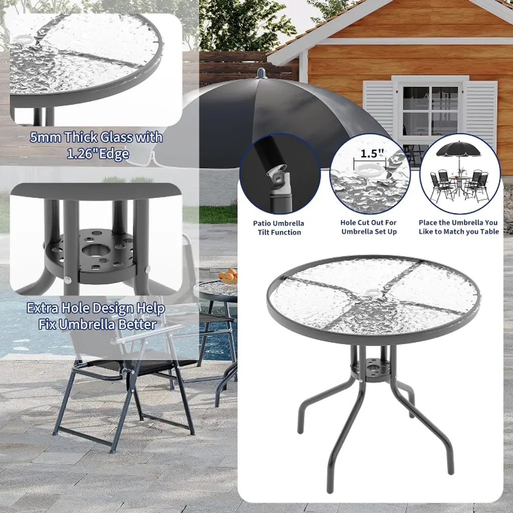 Patio Dining Set for 4 With Umbrella, Outdoor Furniture Set With 4 Folding Dining Chairs, Table Umbrella With Tempered Glass Top Dinings Table