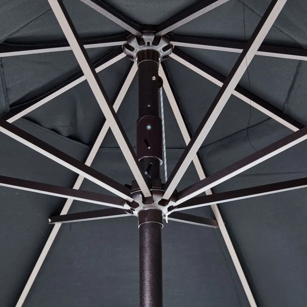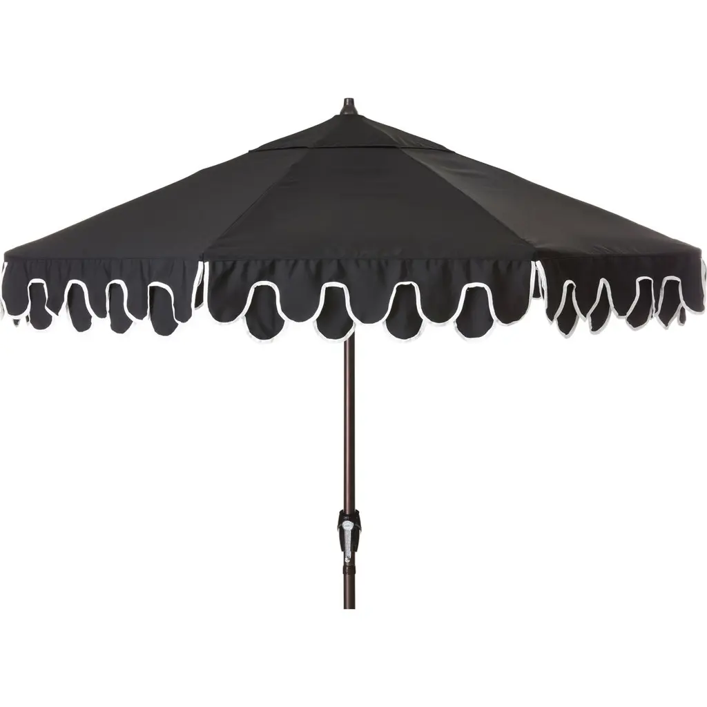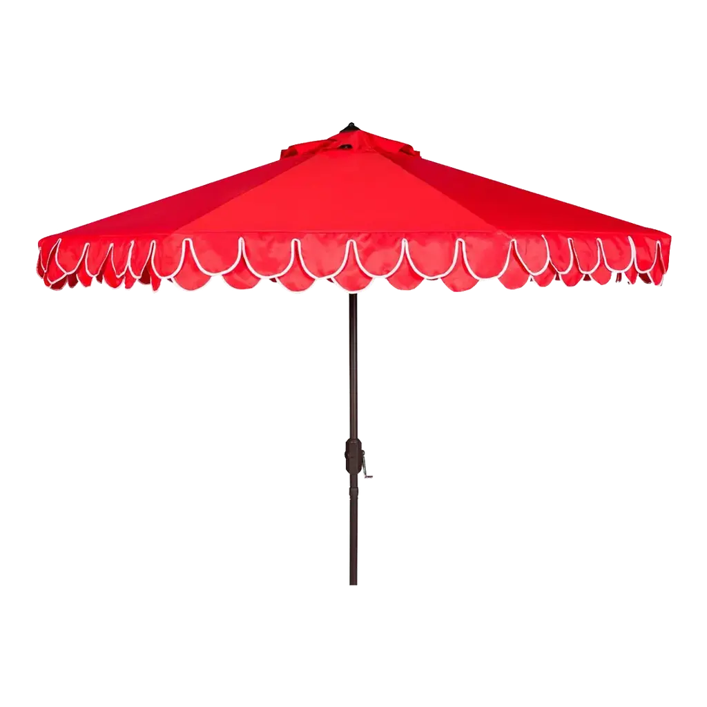 Designed by us and available only at One Kings Lane: Whether you're entertaining or just lounging outdoors, catch some shade in style with this patio umbrella. Its double-scalloped canopy is crafted from durable Sunbrella acrylic to protect against the elements, while its frame is made using a combination of sturdy aluminum and zinc plated steel and features a tilt-and-crank function. An umbrella base is not included but is required for use.