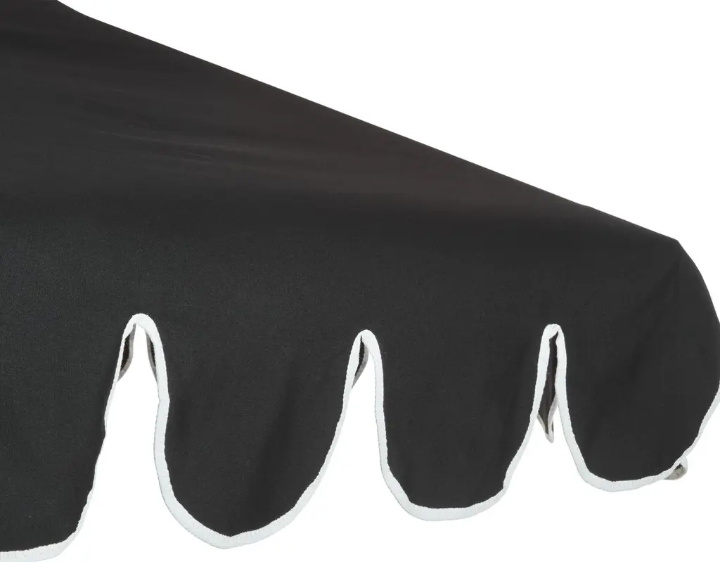 Designed by us and available only at One Kings Lane: Whether you're entertaining or just lounging outdoors, catch some shade in style with this patio umbrella. Its scalloped canopy is crafted from durable Sunbrella acrylic to protect against the elements, while its frame is made using a combination of sturdy aluminum and zinc plated steel and features a tilt-and-crank function. An umbrella base is not included but is required for use.