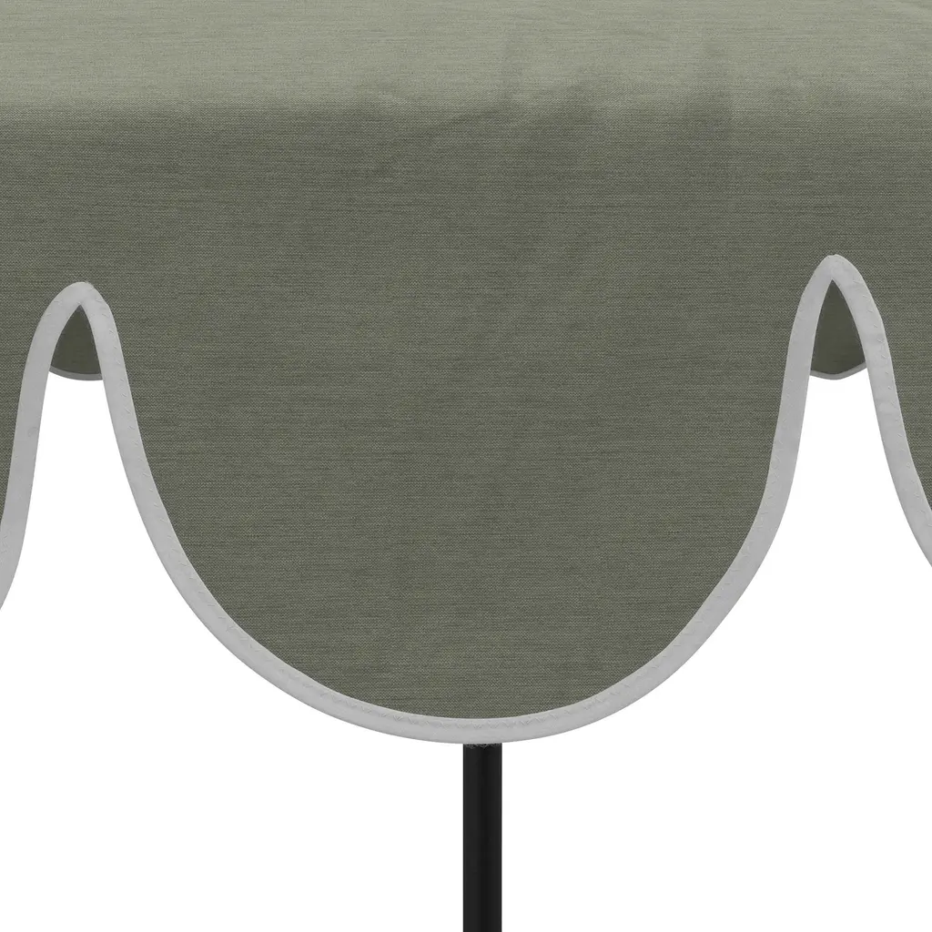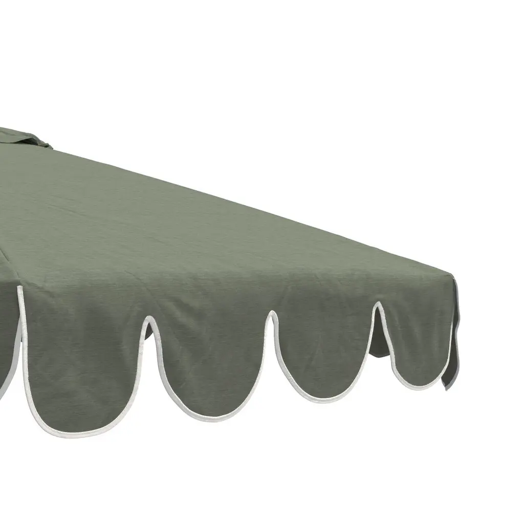 Designed by us and available only at One Kings Lane: Whether you're entertaining or just lounging outdoors, catch some shade in style with this patio umbrella. Its scalloped canopy is crafted from durable Sunbrella acrylic to protect against the elements, while its frame is made using a combination of sturdy aluminum and zinc plated steel and features a tilt-and-crank function. An umbrella base is not included but is required for use.