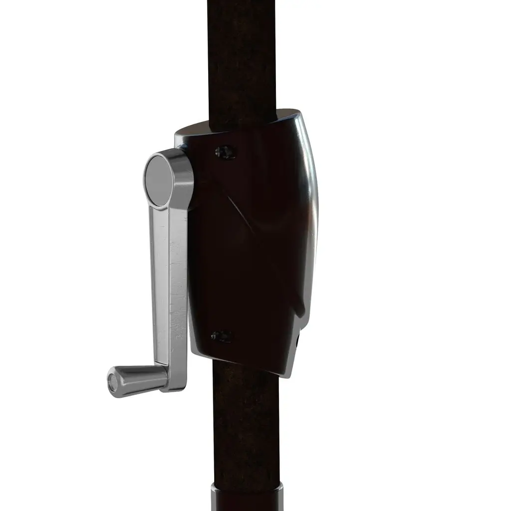 Designed by us and available only at One Kings Lane: Whether you're entertaining or just lounging outdoors, catch some shade in style with this patio umbrella. Its scalloped canopy is crafted from durable Sunbrella acrylic to protect against the elements, while its frame is made using a combination of sturdy aluminum and zinc plated steel and features a tilt-and-crank function. An umbrella base is not included but is required for use.