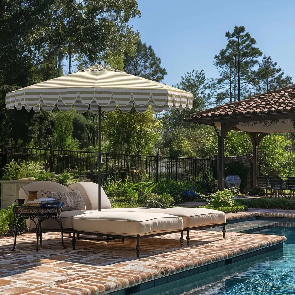 Phoebe Scallop-edge Patio Umbrella, Sunbrella Stripe