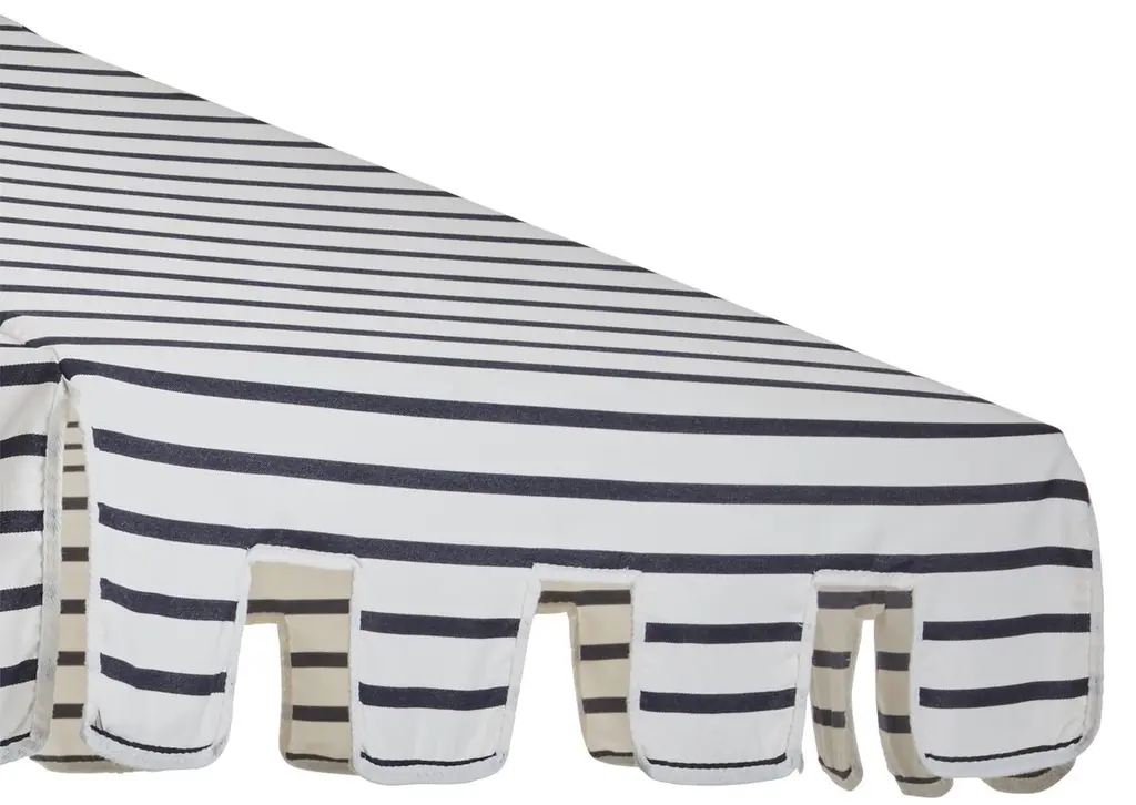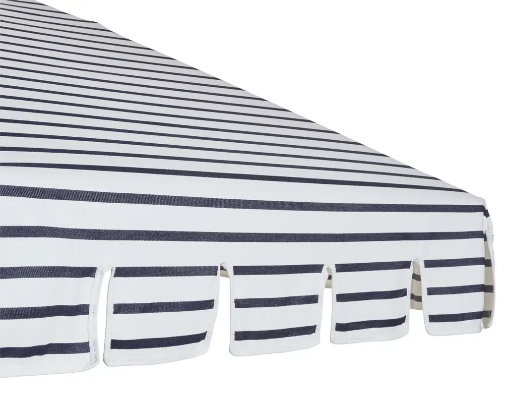 Designed by us and available only at One Kings Lane: Whether you're entertaining or just lounging outdoors, catch some shade in style with this patio umbrella. Its canopy is crafted from durable Sunbrella acrylic to protect against the elements, while its frame is made using a combination of sturdy aluminum and zinc plated steel and features a tilt-and-crank function. An umbrella base is not included but is required for use.