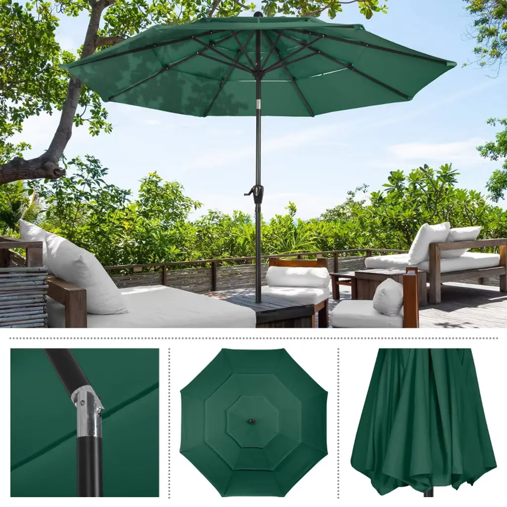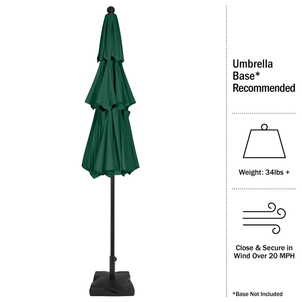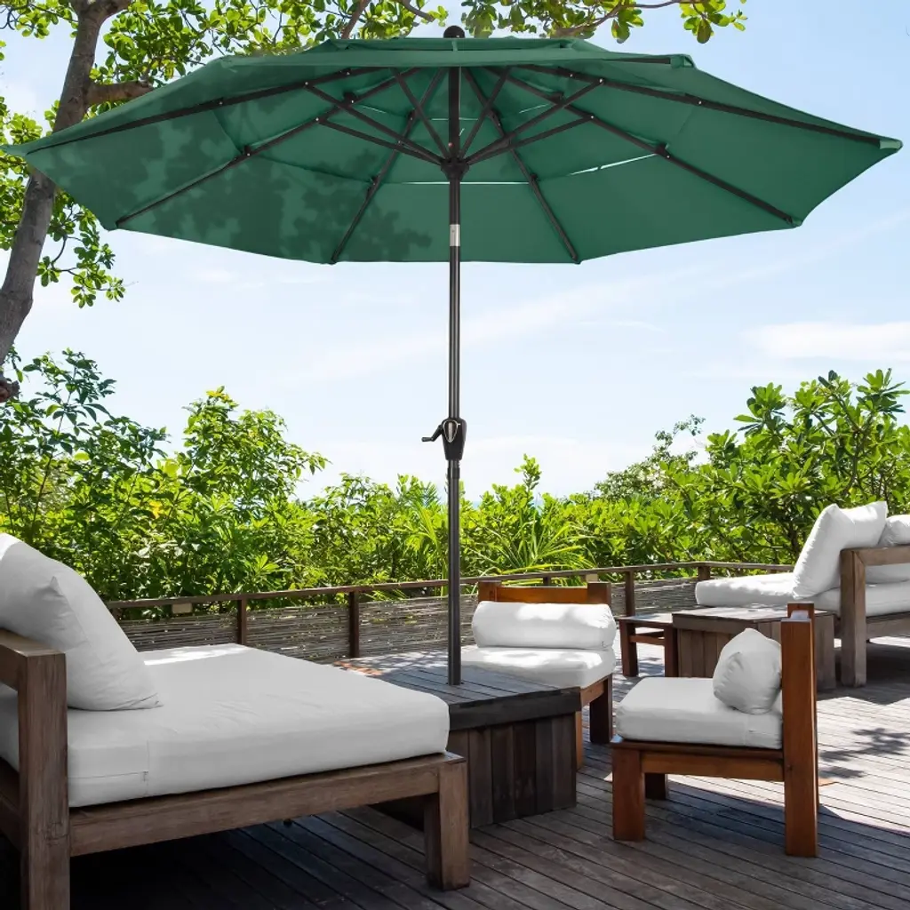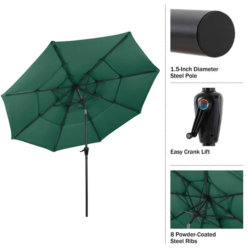 Pure Garden 10' Octagon Outdoor Patio Market Umbrella Green: Wind-resistant, Polyester Canopy, Steel Frame, Crank Lift, Push-button Tilt