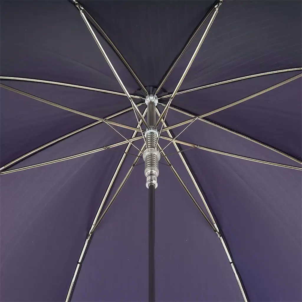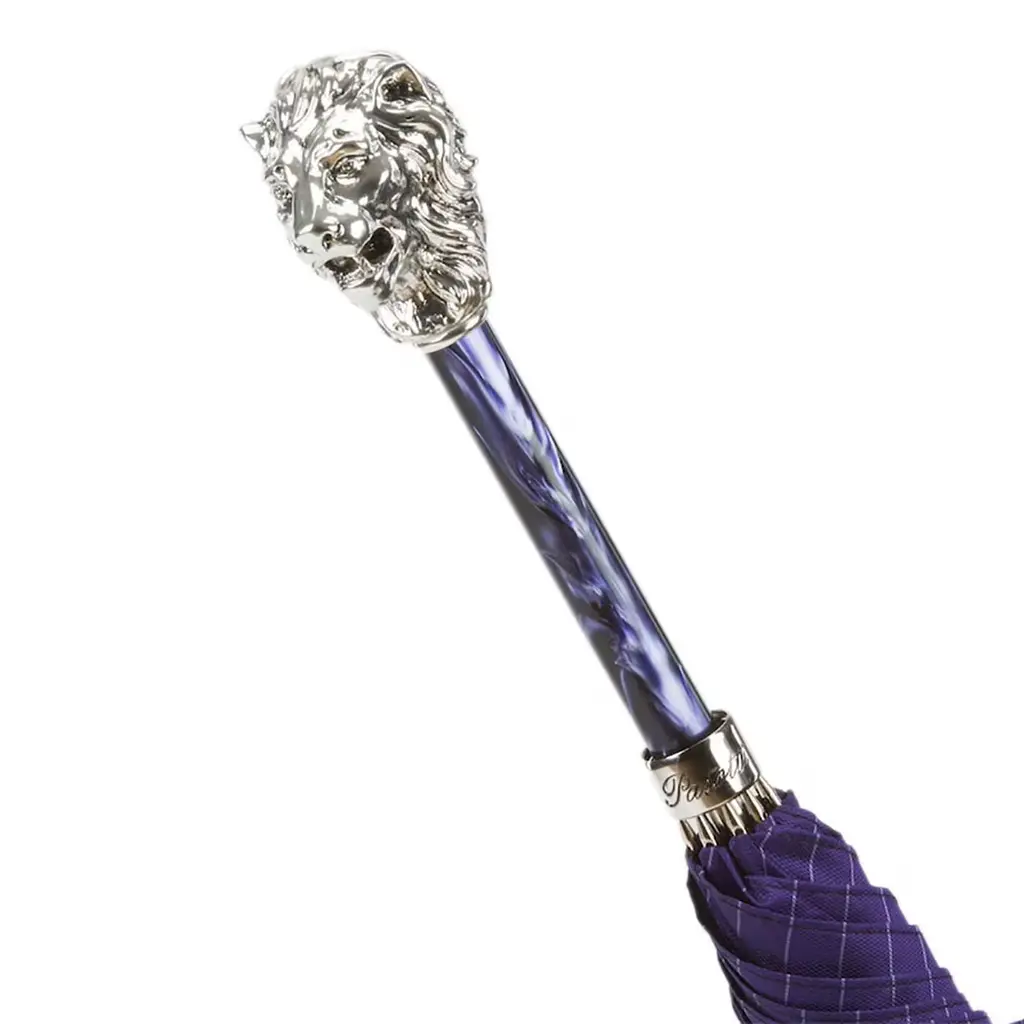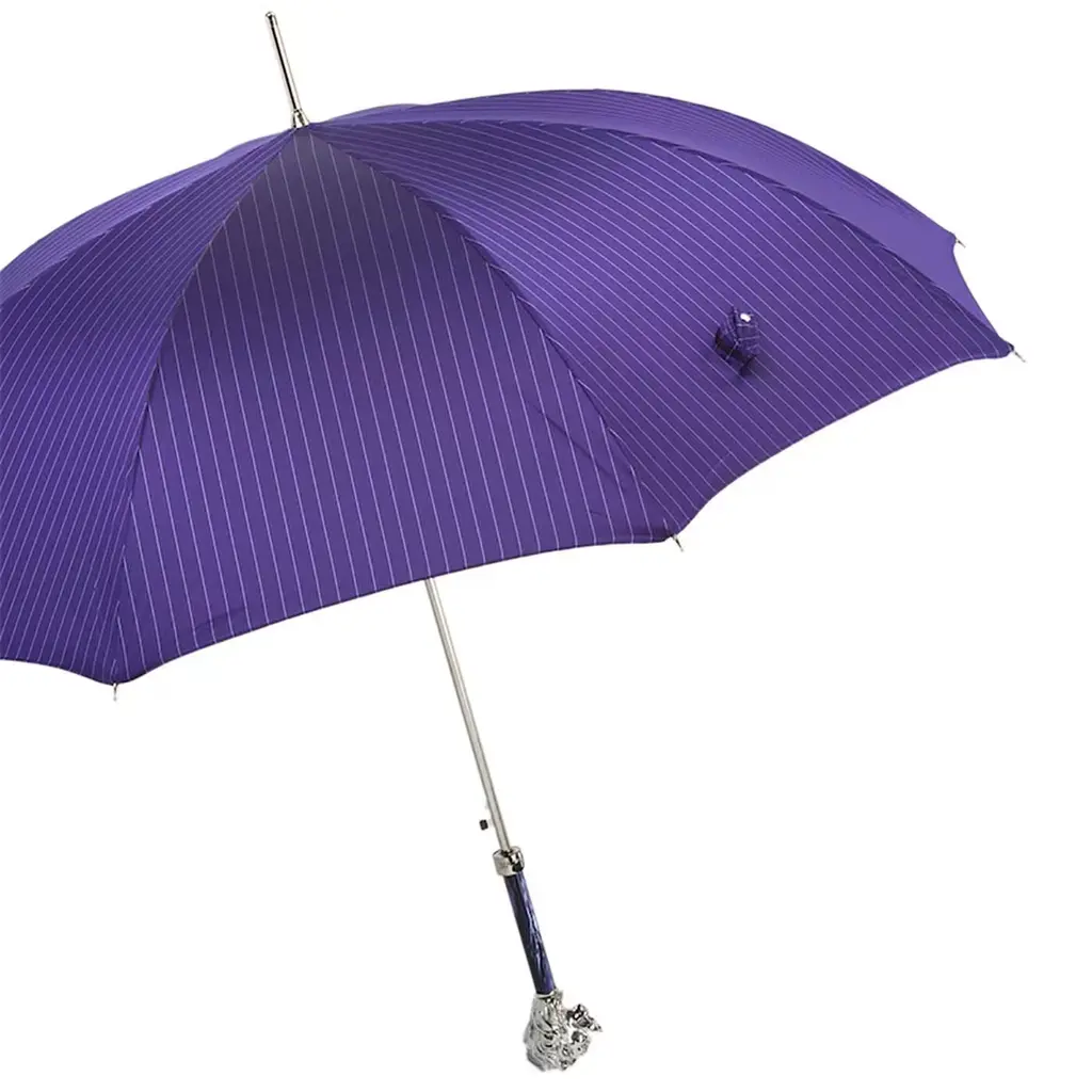 Handmade in Italy, Pasotti have developed a cult following for using only the finest materials available. From polished brass handles to precious silk fabrics and even Swarovski, Pasotti’s umbrellas won’t just keep you dry – they’re fashion accessories built to last a lifetime. A purple pinstripe pattern umbrella for men crafted with silver-plated lion head handle.