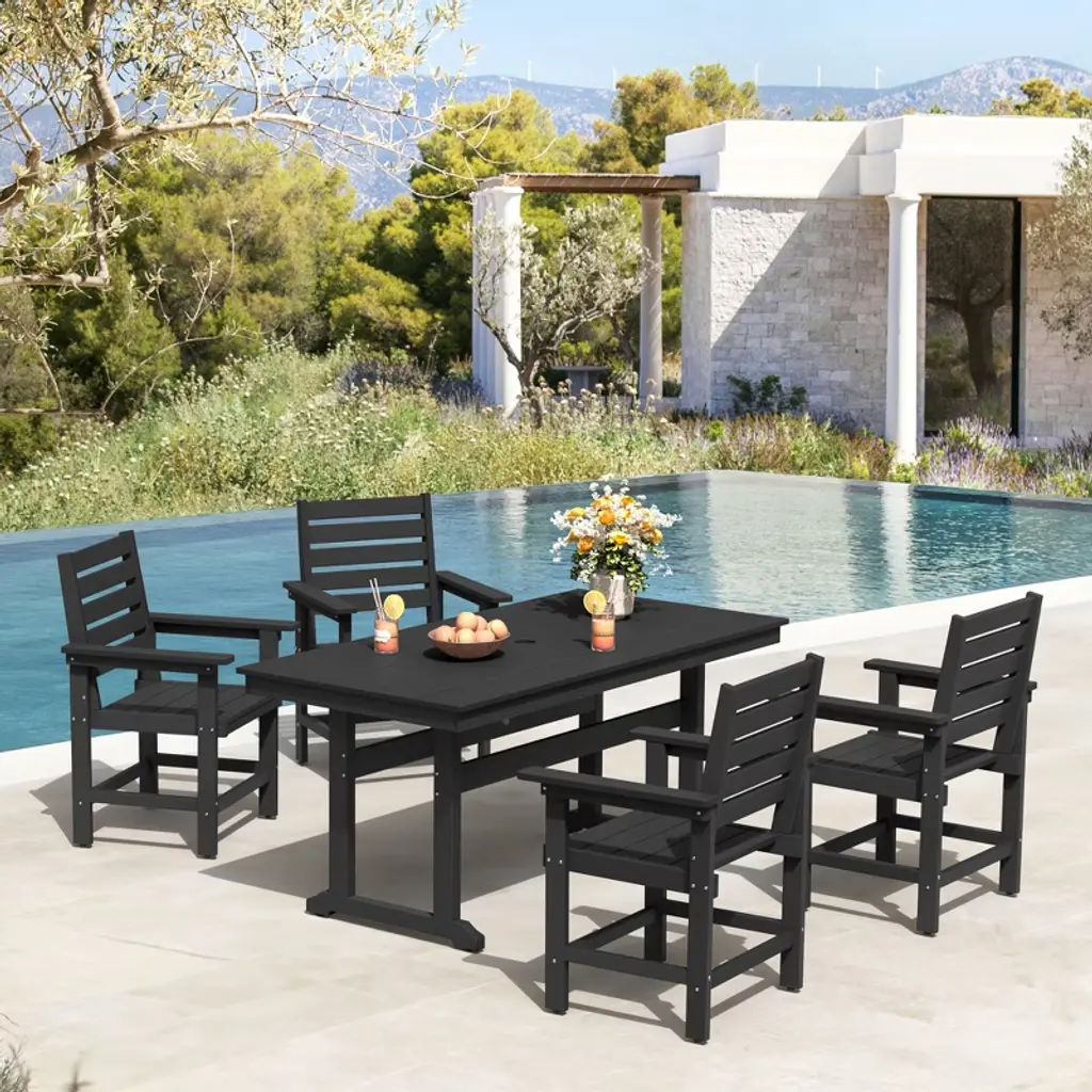 Rectangle Outdoor Dining Tables For 6, Hdps Weather Resistant Patio Dining Table, 66" Outdoor Tables With 1.96" Umbrella Hole, Black