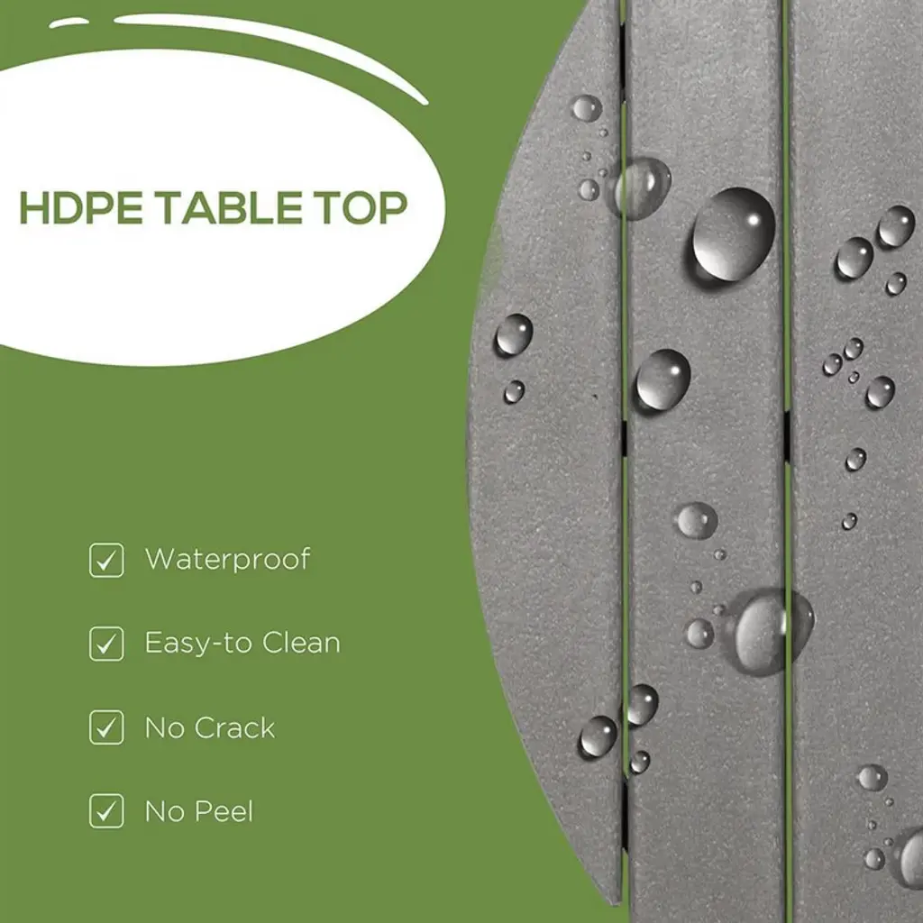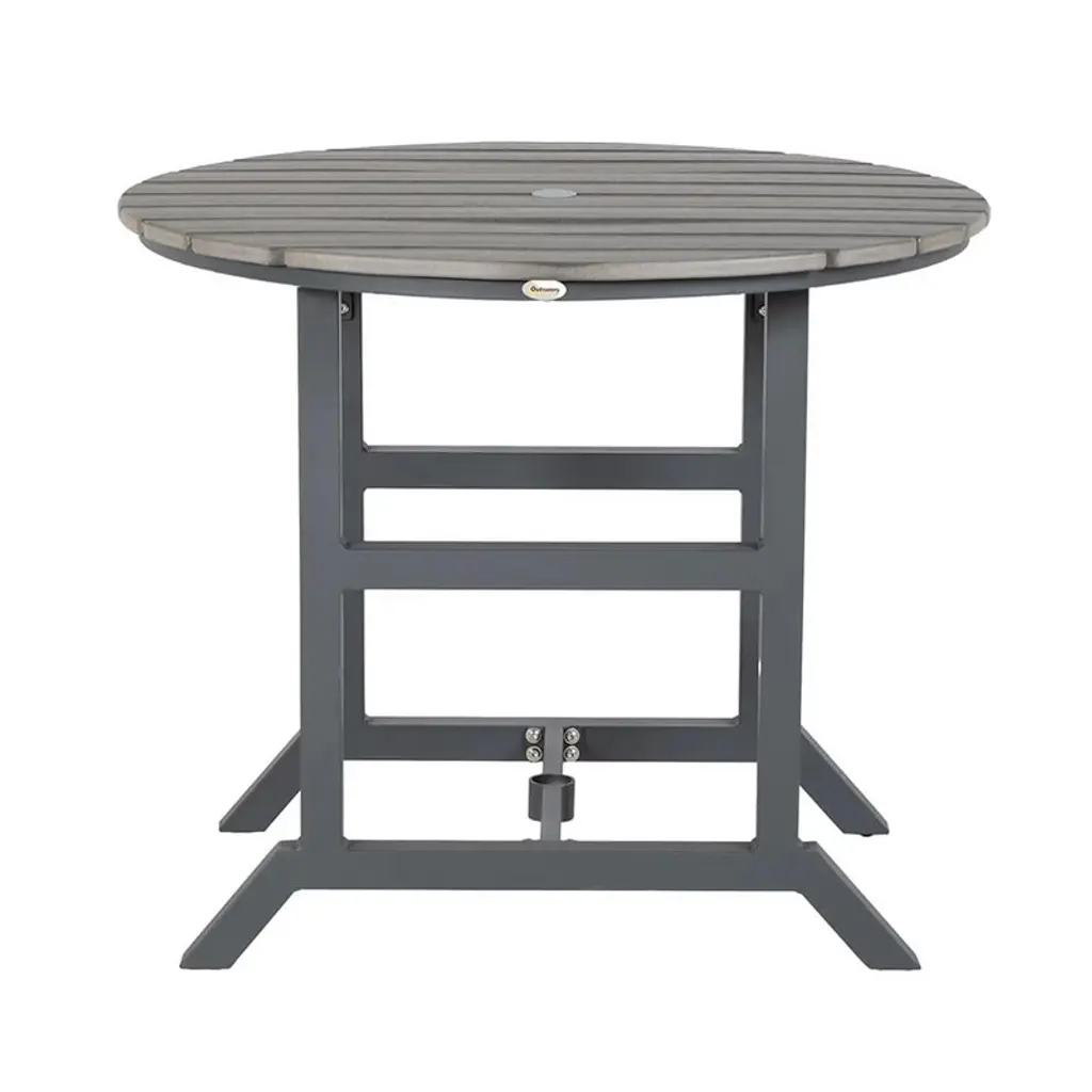 Set up an outdoor dining space in a cinch. Outsunny offers an outdoor table with an umbrella hole to help entertain guests. Share dinner and drinks or sit outside and chat. An umbrella hole in the center provides soothing shade, allowing your outdoor home base to be sunburn-free. This table is slatted with an HDPE surface. This combination makes rain drain away easily. HDPE is waterproof, and the table includes a naturally water-safe aluminum frame. Get out, get comfy, get Outsunny. Features: - Seat four people and enjoy dining outside - A 1.6" diameter umbrella hole to fit most umbrella poles - Waterproof HDPE tabletop - Powder-coated aluminum frame is easy to carry and water-safe - Slatted design adds a classic touch and is easier to drain after rain - Suitable for the patio, balcony, terrace and garden - Easy assembly Specification: - Color: White - Materials: HDPE, Aluminum - Overall Dimensions: Dia. 35" x 29.1" H - Umbrella Hole: Dia. 1.6" - Weight Capacity: 110 lbs. - Item Label: 84G-331V00WT Package Includes: - 1 x Garden Dining Table - 1 x Manual Resenkos Patio Dining Tables,Patio Tables,Round Patio Table with Umbrella Hole, Outdoor Dining Table for 4 People, White