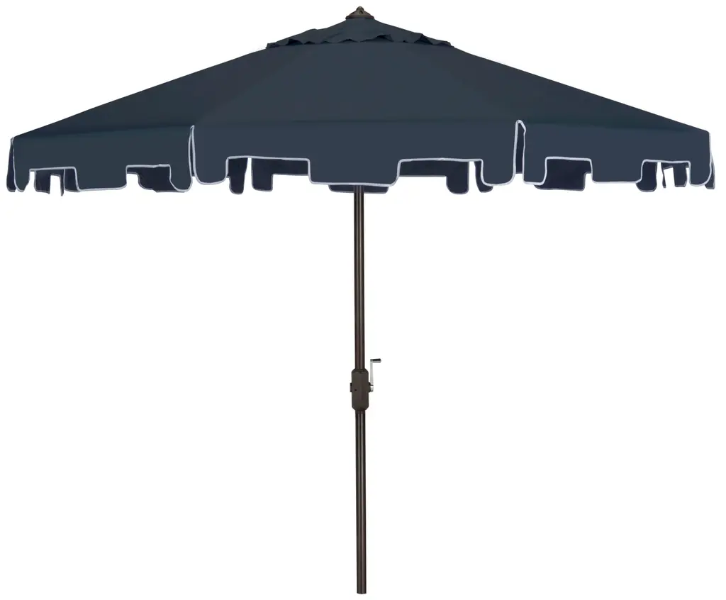 The navy blue market umbrella gets a chic makeover with the addition of a for extra sun protection and European flair. it's nine-foot polyester fabric canopy and sturdy brown aluminum frame make this the ideal umbrella for veranda or pool deck. Includes easy crank and tilt mechanism. Store outdoor furniture indoors or cover well when not in use. Remove wooden furniture from standing water. Dust regularly with small brush or vacuum. Spills should be taken care of immediately before they harden or stain with a slightly dampened sponge. Do not use bleach solutions. Some assembly required.