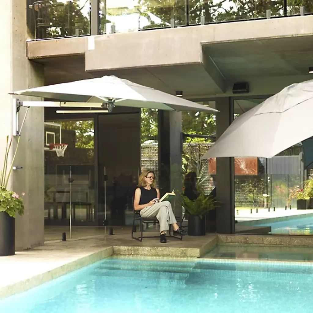 The Retreat Wall Mounted Umbrella from Shadowspec is a sleek, wall-mounted umbrella designed to rotate, tilt, and extend easily. It offers full shade coverage without bulky bases or obstructive poles and is ideal for balconies and narrow outdoor spaces. Crafted from durable marine-grade materials, it’s built to withstand the elements. The Shadowlift gas-piston system ensures smooth, effortless operation. When not in use, this umbrella folds vertically, minimizing its footprint and avoiding interference with nearby walls, windows, or architectural features.