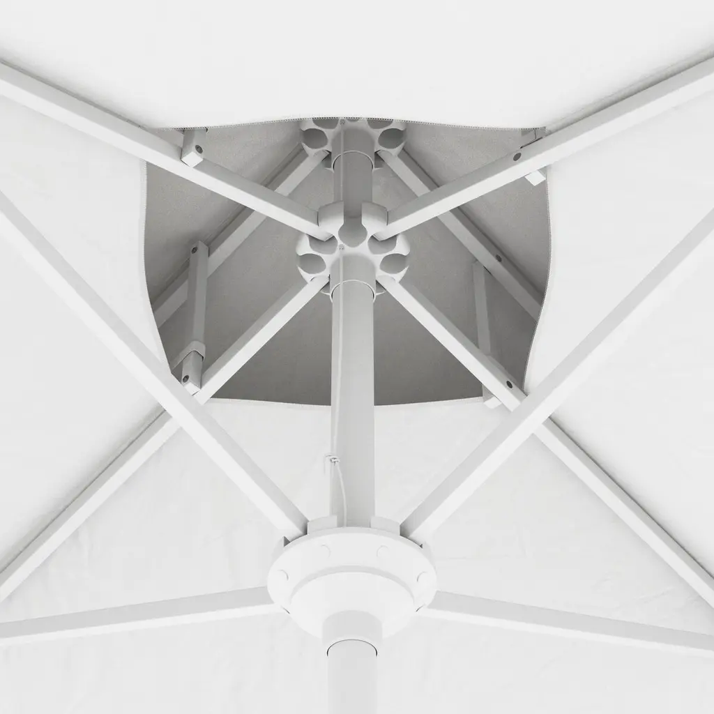 Designed by us and available only here: Whether you're entertaining or just lounging outdoors, catch some shade in style with this tiered patio umbrella. Its square canopy is crafted from durable Sunbrella acrylic to protect against the elements, while its frame is crafted from a combination of sturdy aluminum and zinc plated steel with a crank open, non-tilt function. An umbrella base is not included but is required for use.