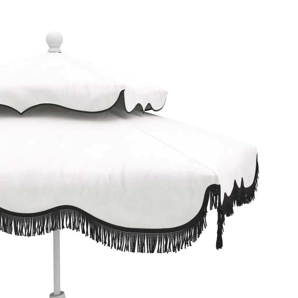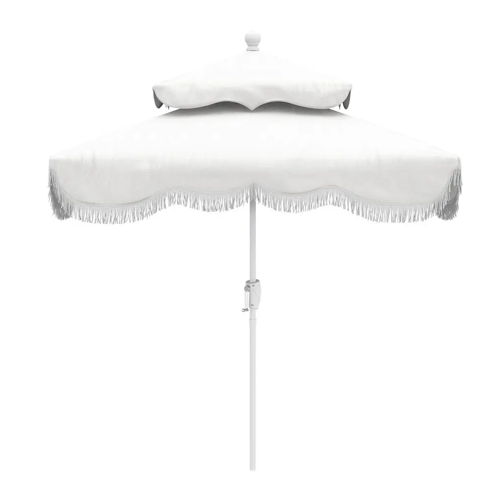 Ripple Fringe Two-tier Square Patio Umbrella, Sunbrella